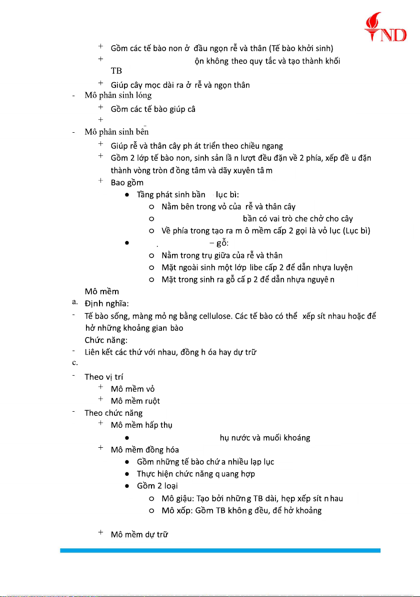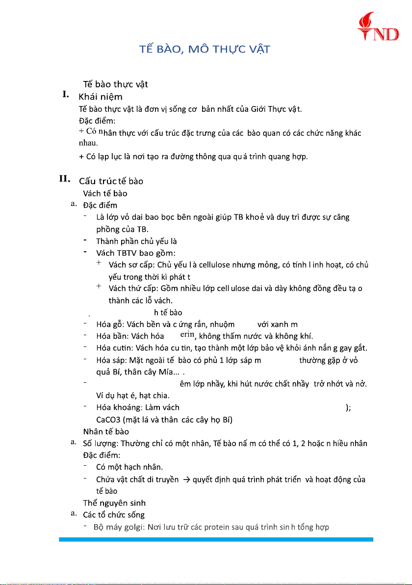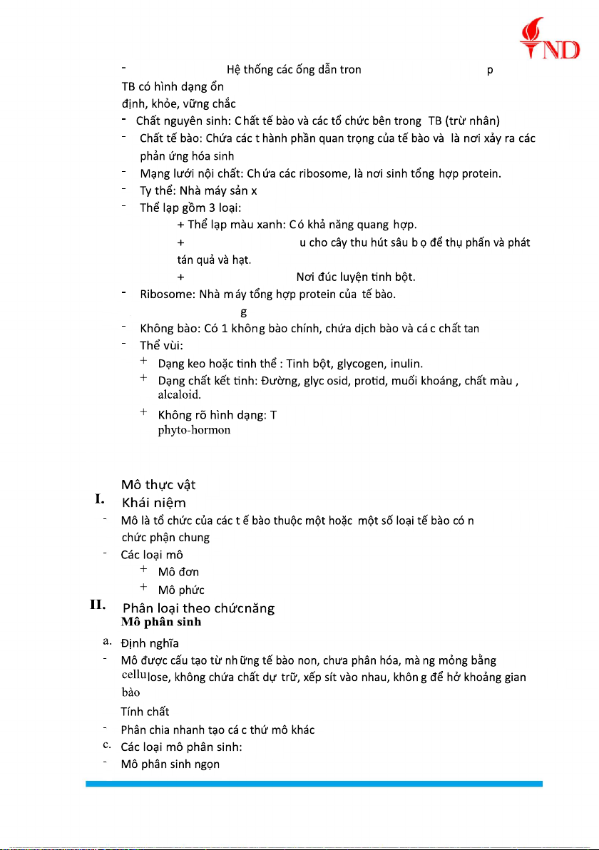 VITAMIN DƯỢC - TEAM HỌC TẬP TND 14 15 - VITAMIN DƯỢC D lOMoAR cPSD| 59062190 1. Là cơ quan sinh dưỡng a đi khắp cây 2. ra các chồi