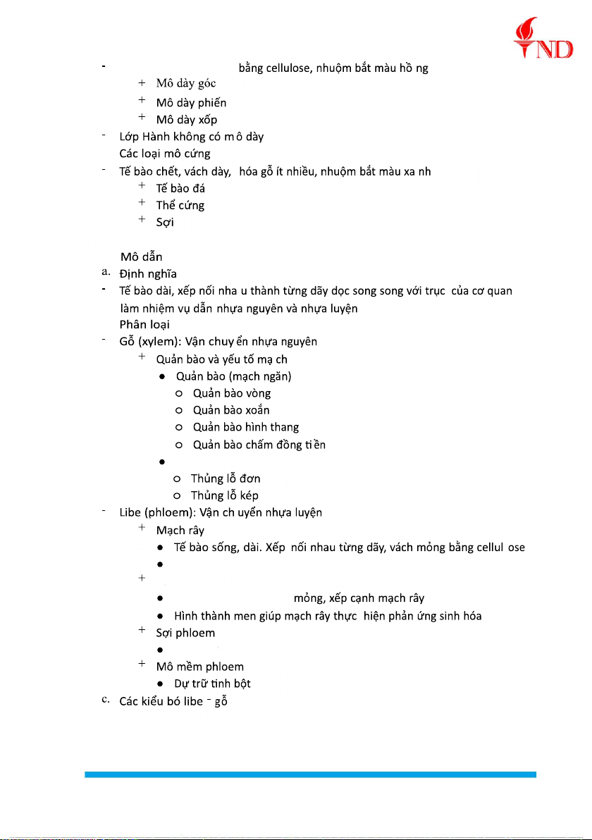 Tế bào vách dày, cứng, ơng của cây b. Mô cứng 11 - VITAMIN DƯỢC D lOMoAR cPSD| 59062190 Tế bào sống, vách dày d. 5. b.