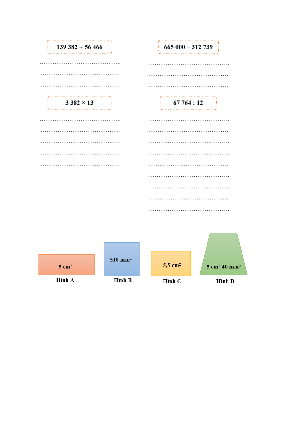 Bài 3. (1 điểm) Cho các hình có diện tích như sau: