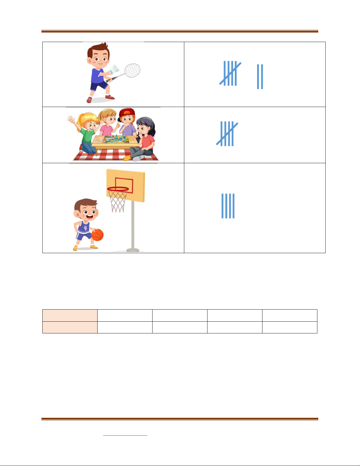 Bài 1. Quan sát bảng thống kê sau và cho biết: