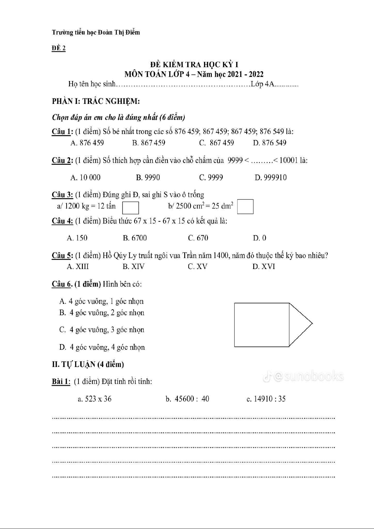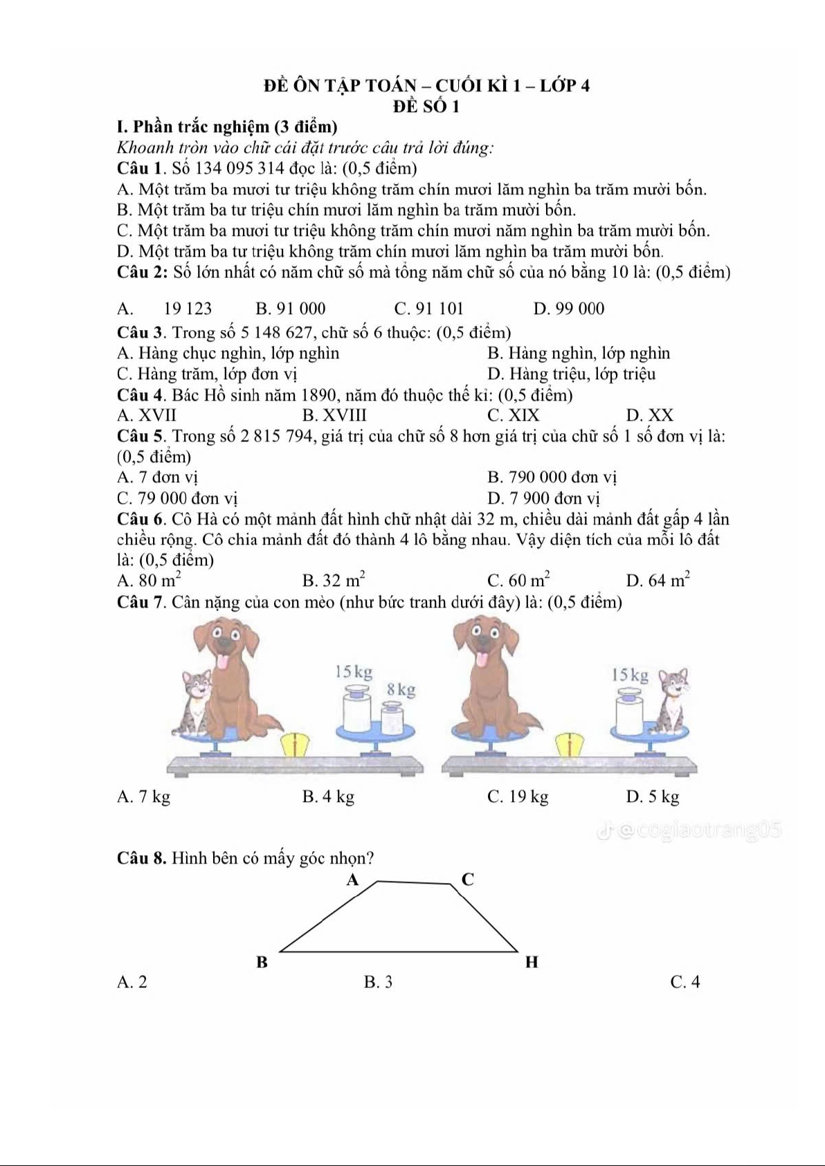 Đề cương toán cuối kì 1 lớp 4.Tài liệu được tổng hợp và sưu tầm gồm 10 trang. Mời các bạn tham khảo