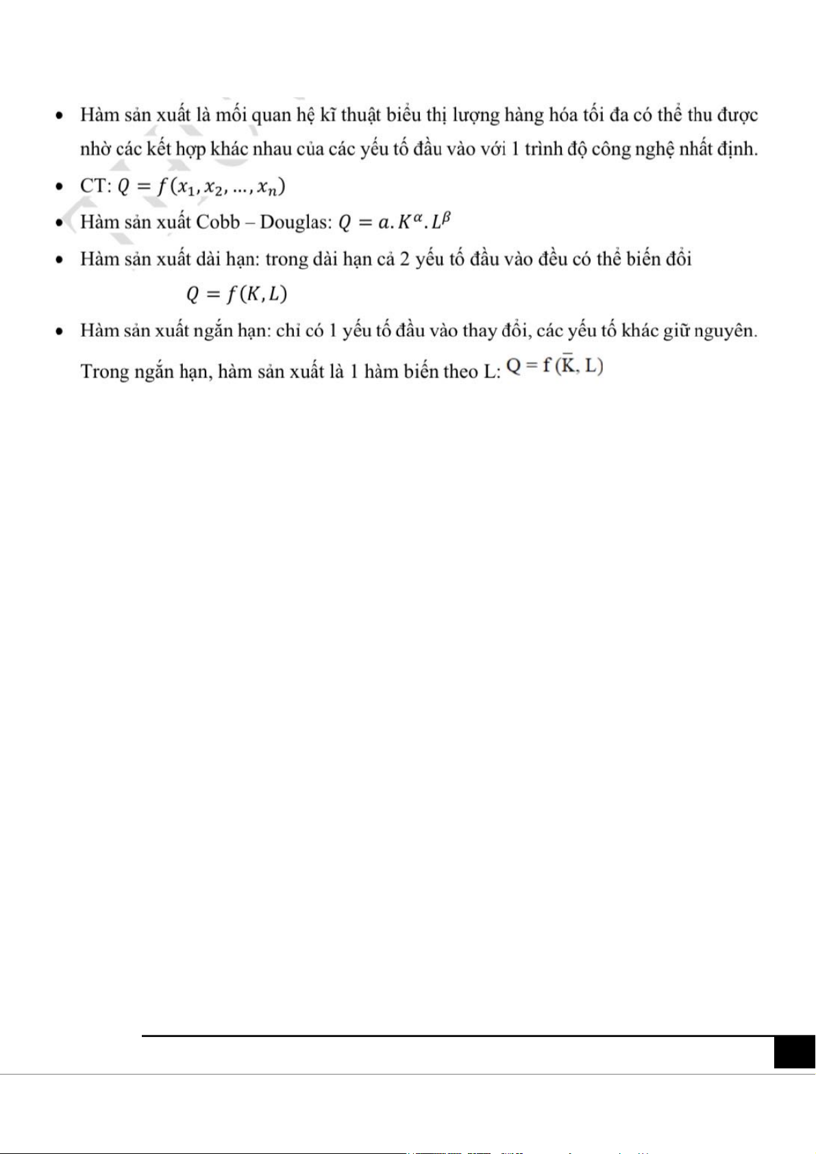 - Hàm sản xuất là mối quan hệ kỹ thuật, biểu thị lượng hàng hóa tối đa thu được
