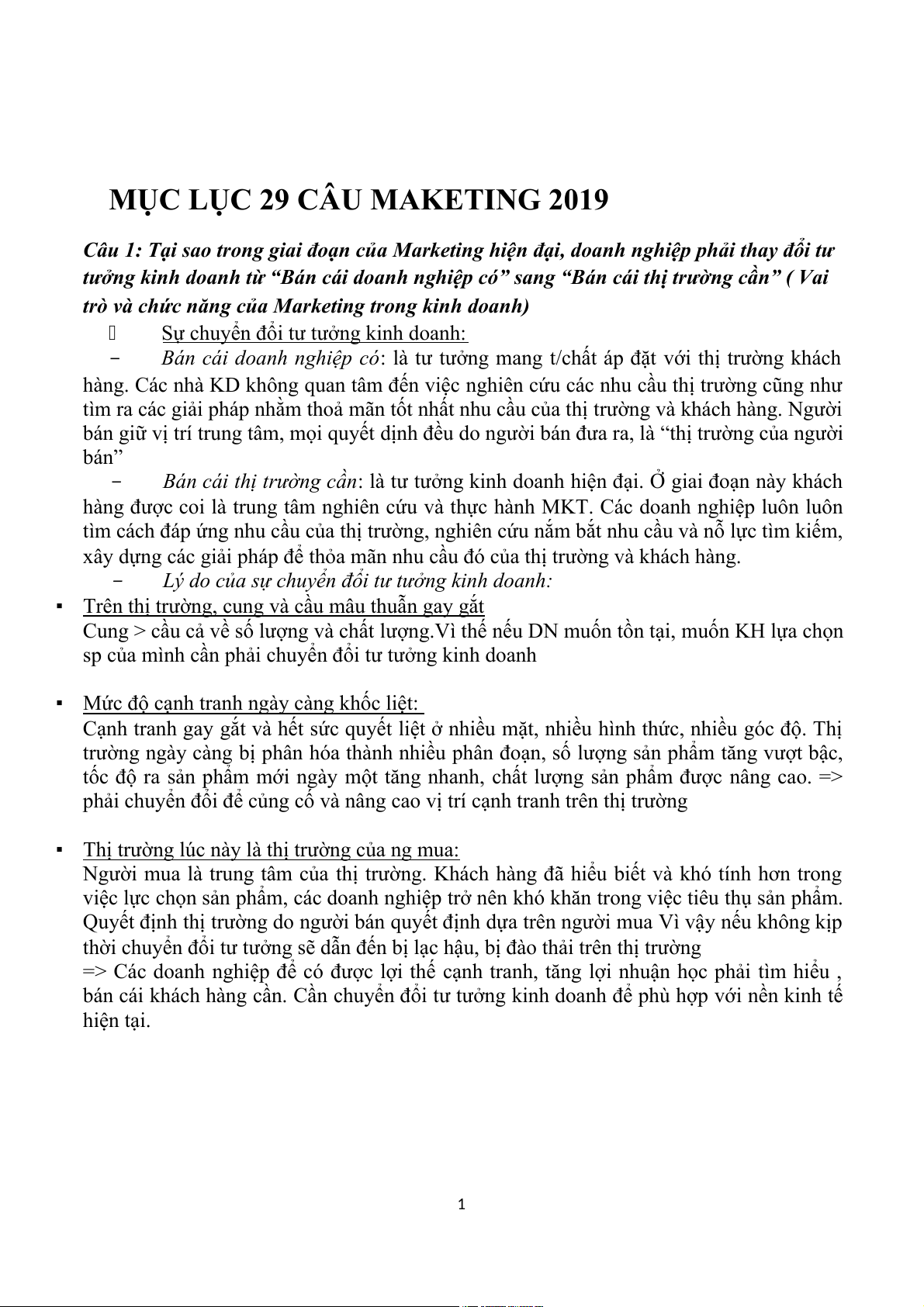 MỤC LỤC 29 CÂU MAKETING 2019