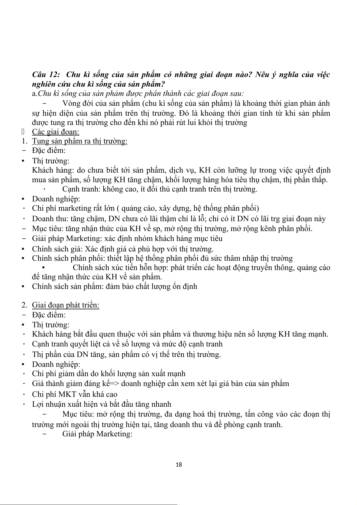 Câu 12: Chu kì sống của sản phẩm có những giai đoạn nào? Nêu ý nghĩa của việc