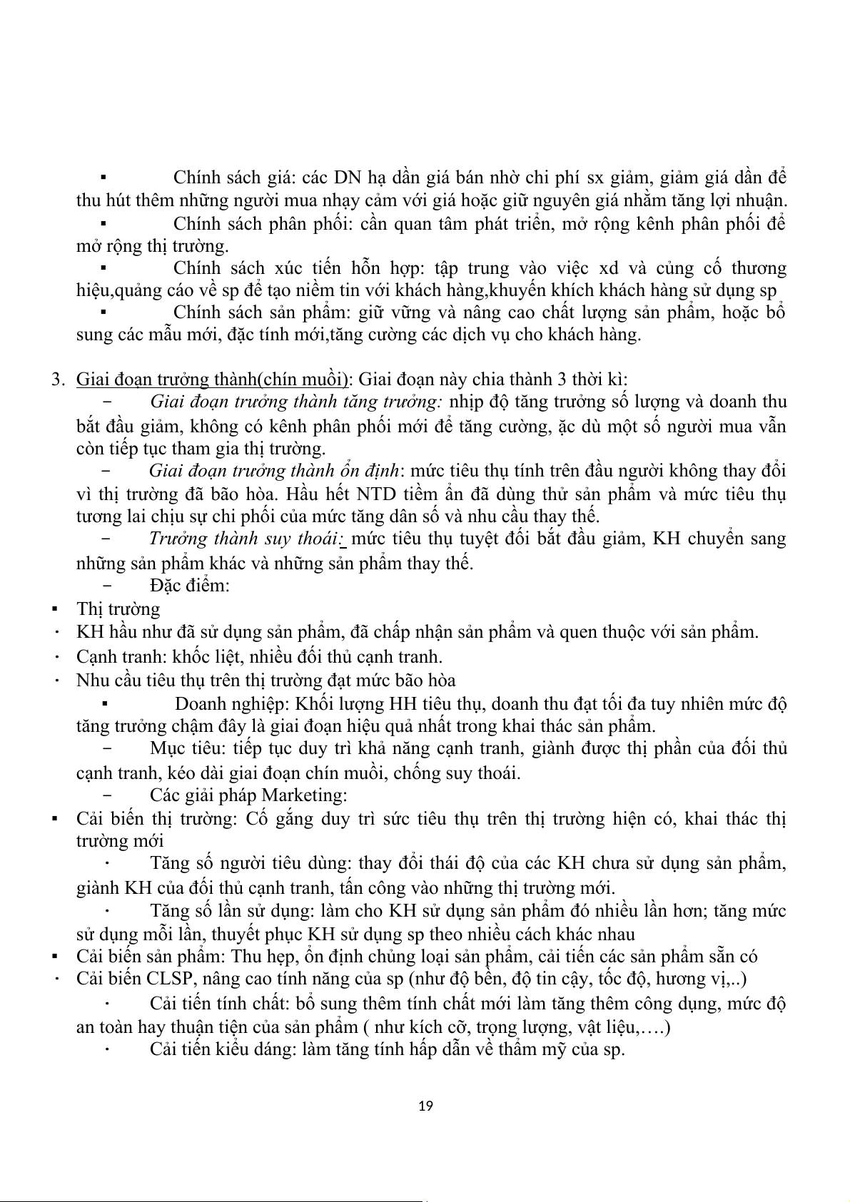 cạnh tranh, kéo dài giai đoạn chín muồi, chống suy thoái. - Các giải pháp Marketing: