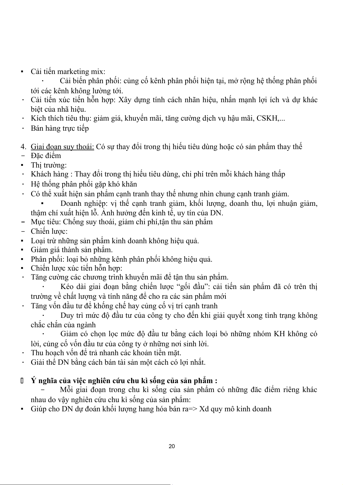 · Kích thích tiêu thụ: giảm giá, khuyến mãi, tăng cường dịch vụ hậu mãi, CSKH,... · Bán hàng trực tiếp 4. Giai đoạn suy thoái: