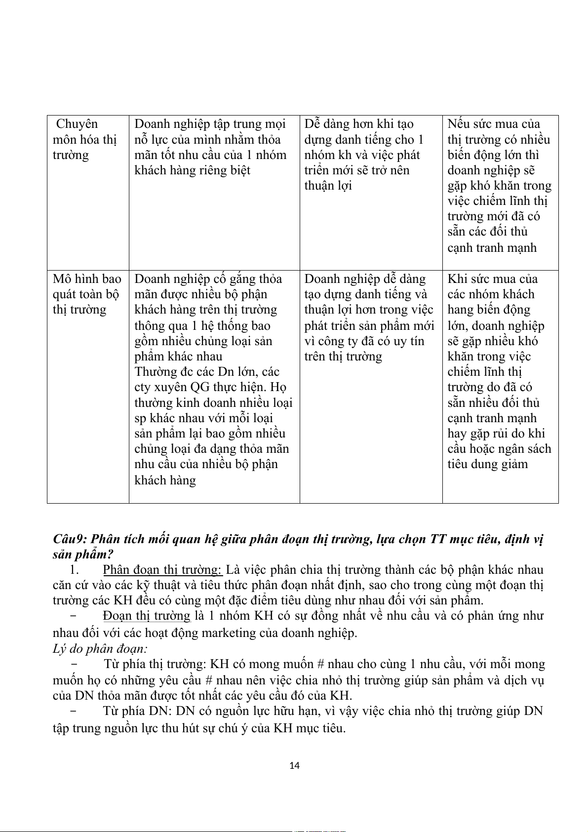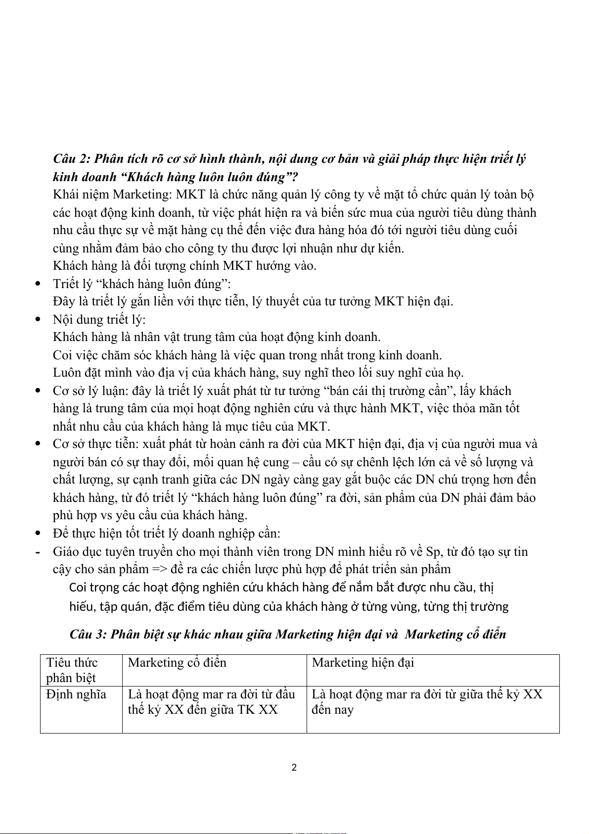 Câu 3: Phân biệt sự khác nhau giữa Marketing hiện đại và Marketing cổ điển Tiêu thức Marketing cổ điển Marketing hiện đại phân biệt Định nghĩa