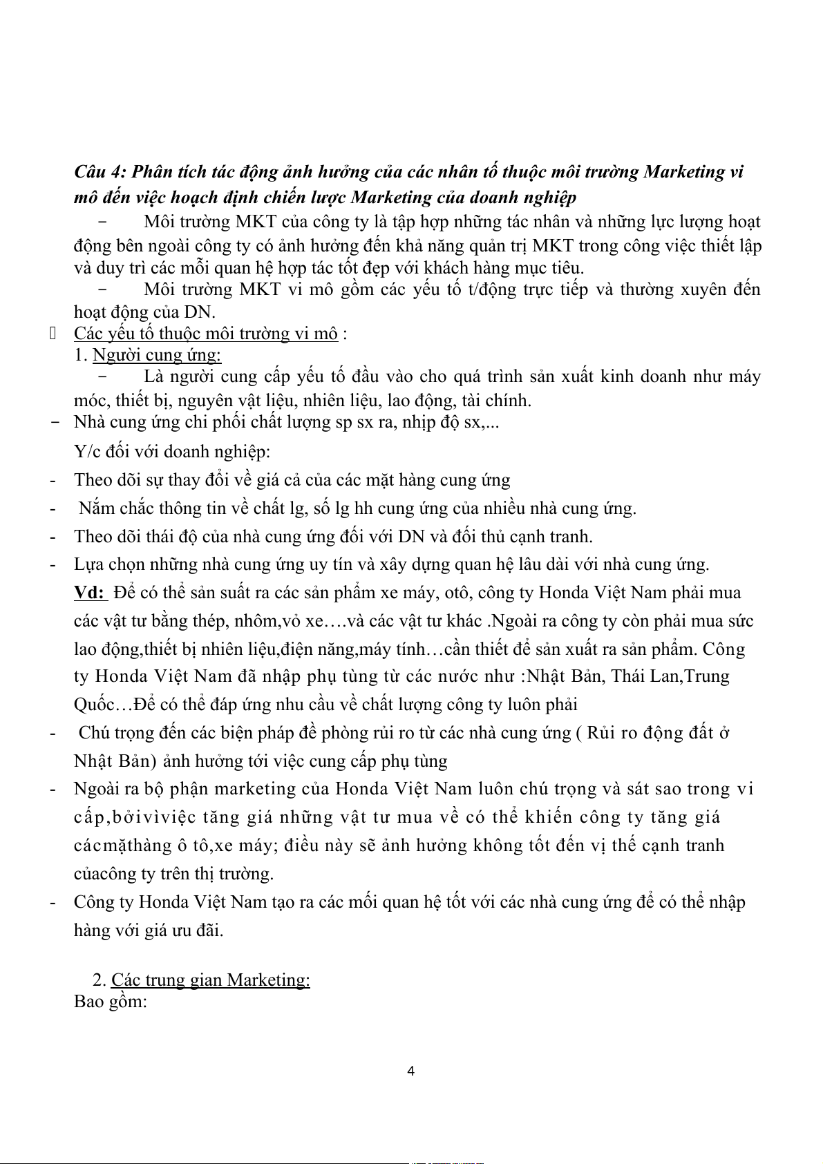 Câu 4: Phân tích tác động ảnh hưởng của các nhân tố thuộc môi trường Marketing vi