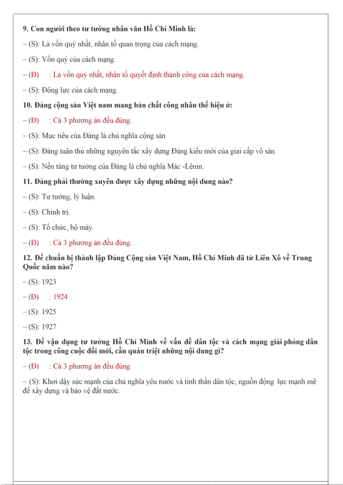 – (S): Tư tưởng Hồ Chí Minh là kết quả của sự vận dụng sáng tạo chủ nghĩa Mác – Lênin vào