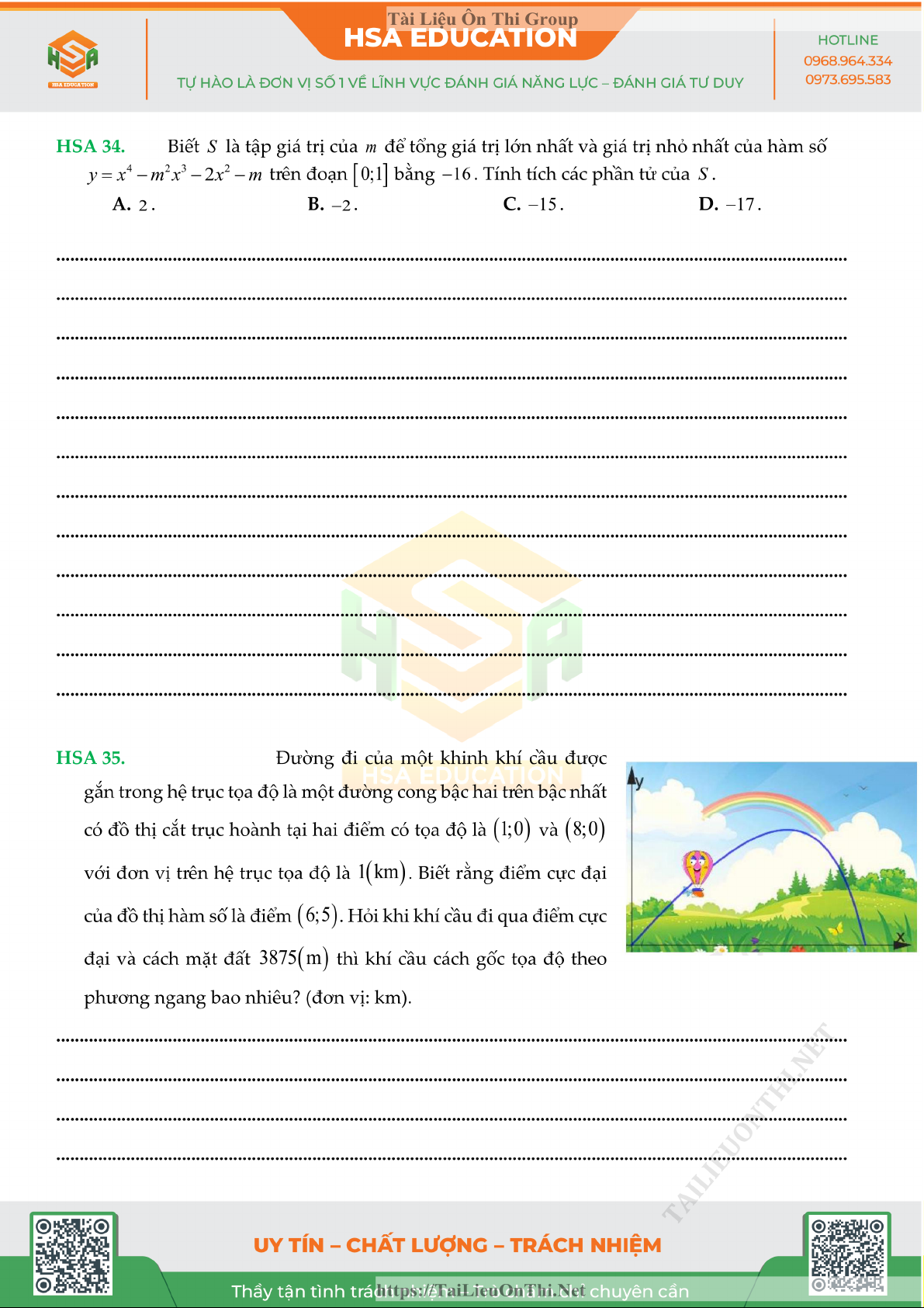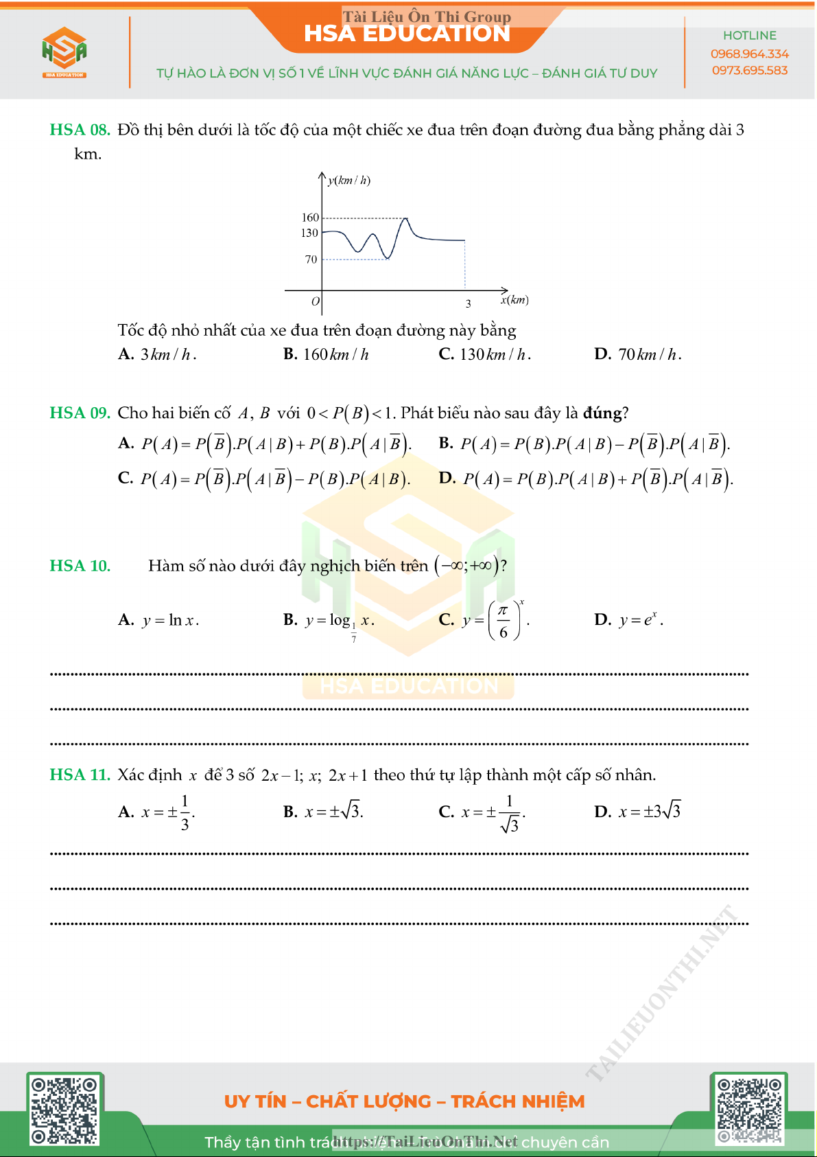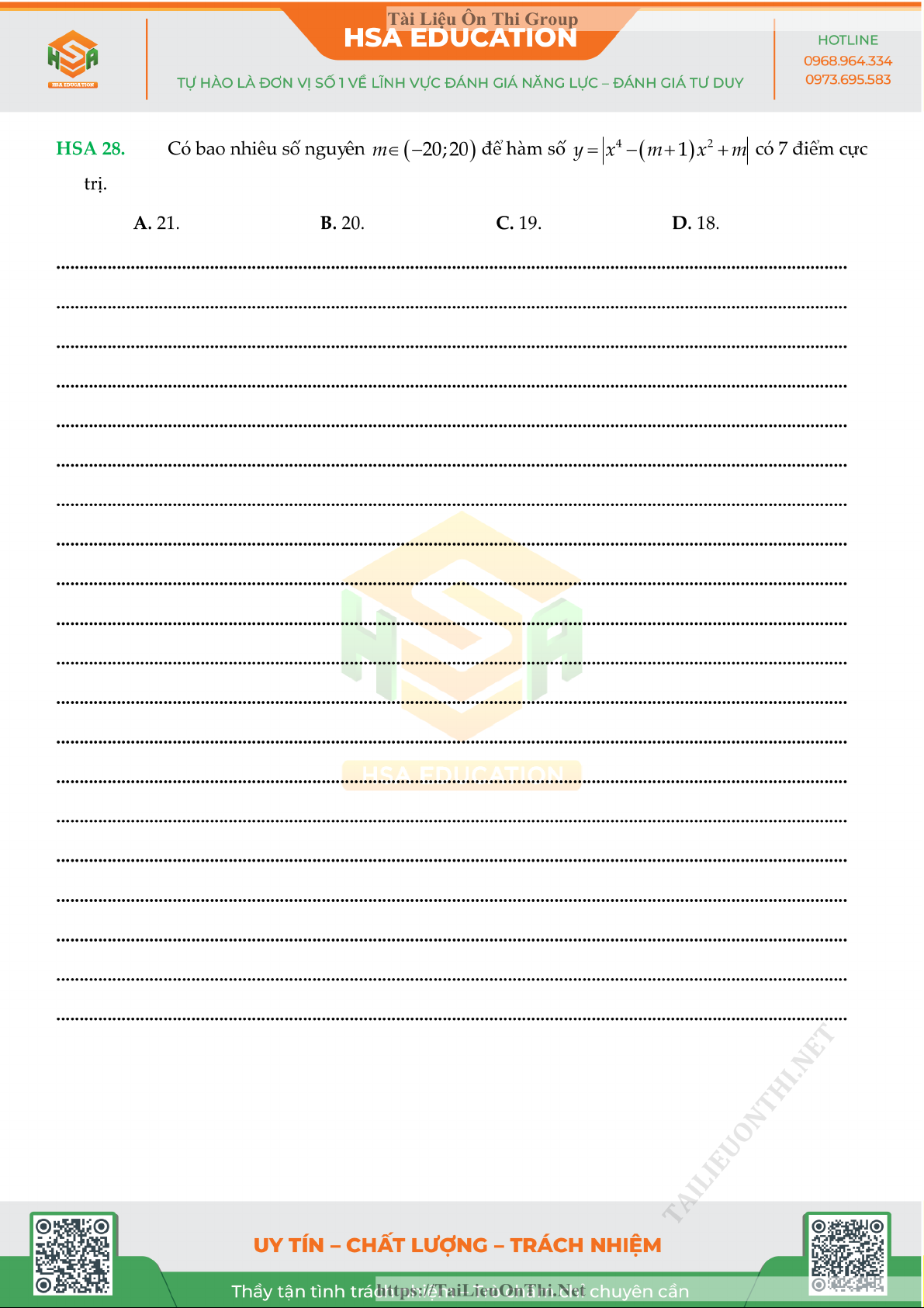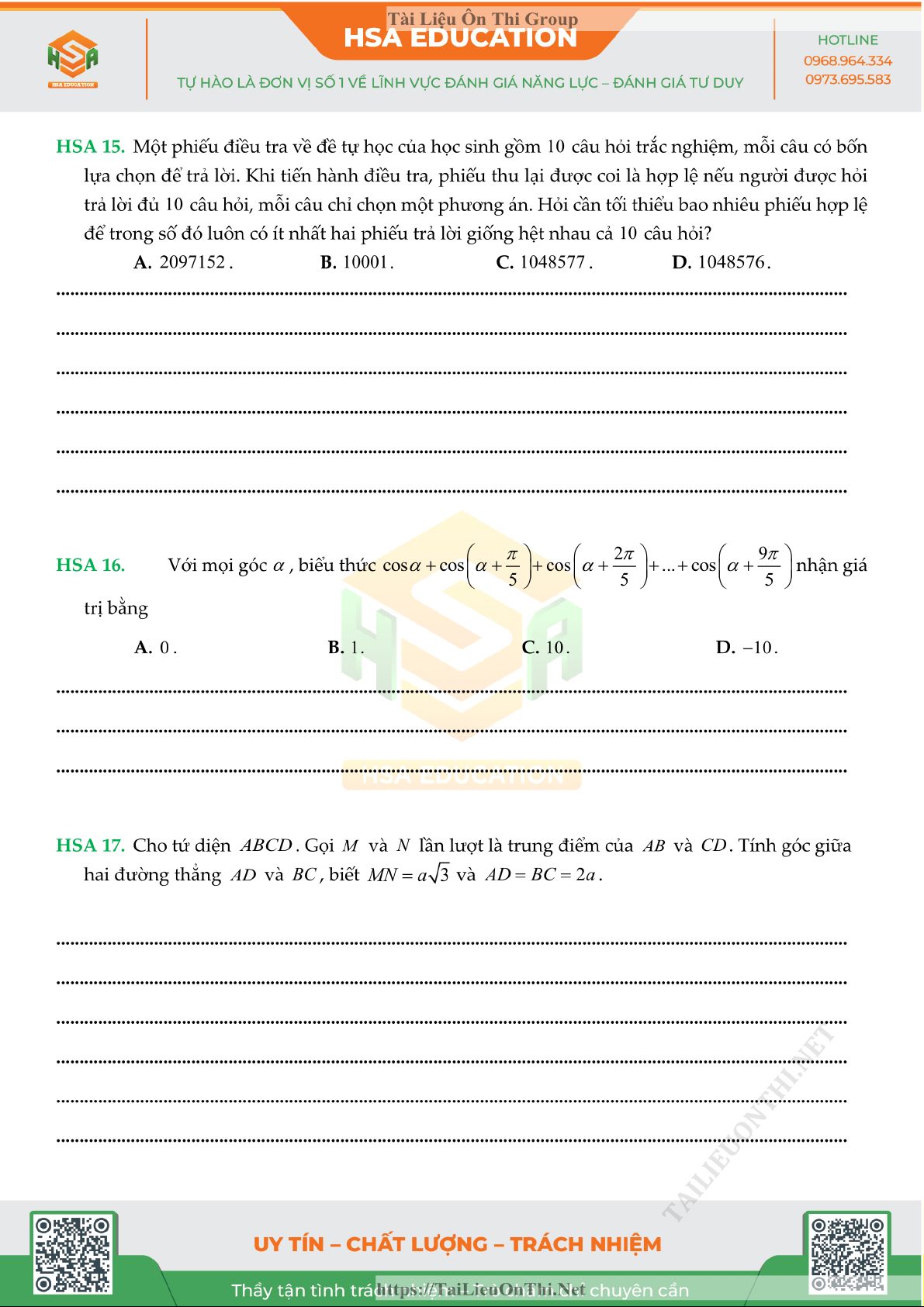 Đề đánh giá năng lực - HSA số 5 môn Toán