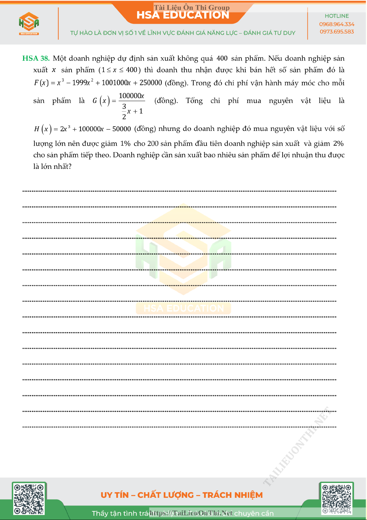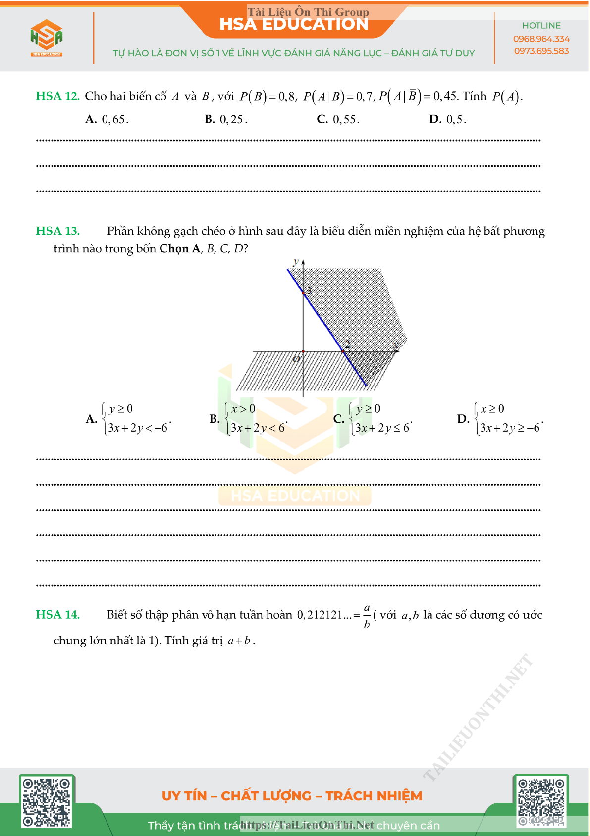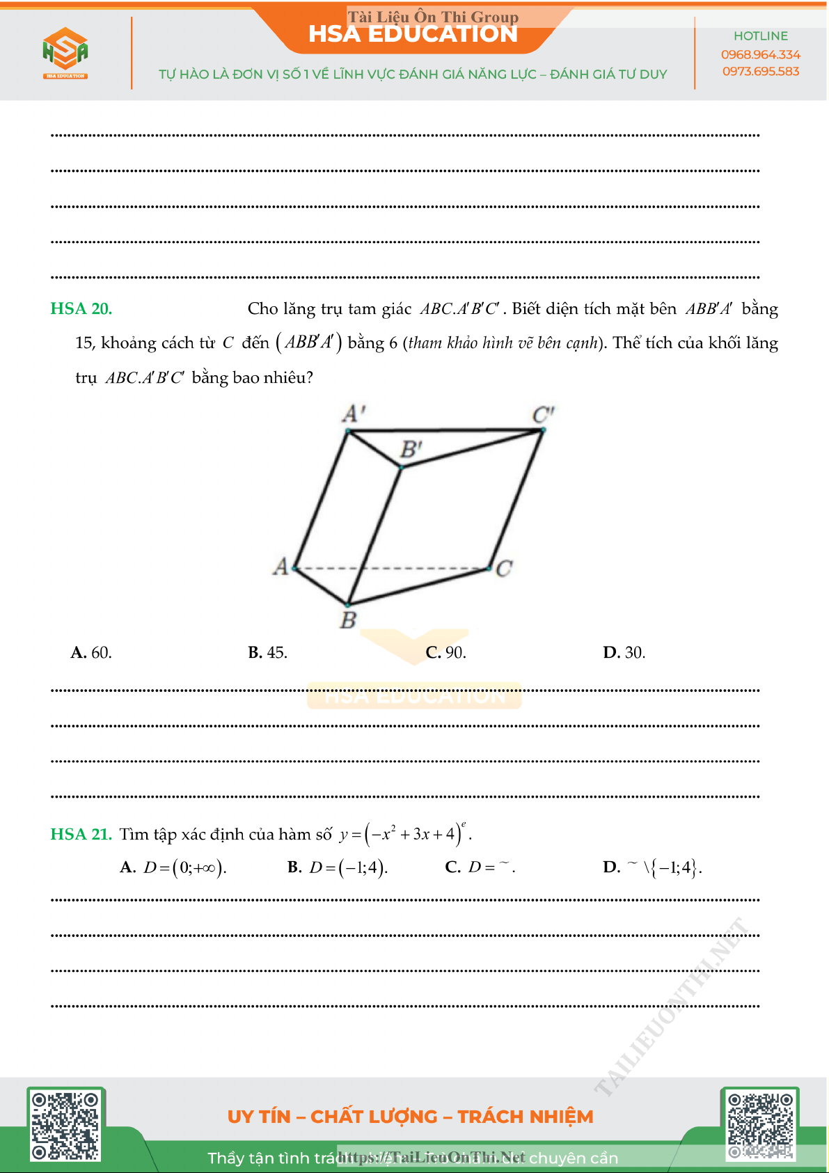 Đề đánh giá năng lực - HSA số 5 môn Toán
