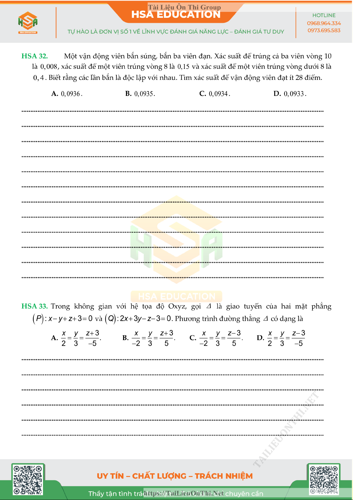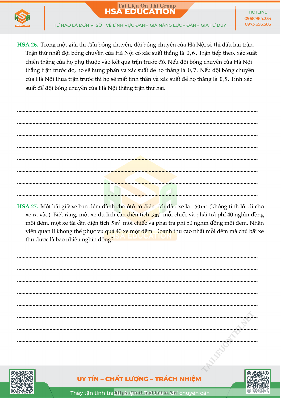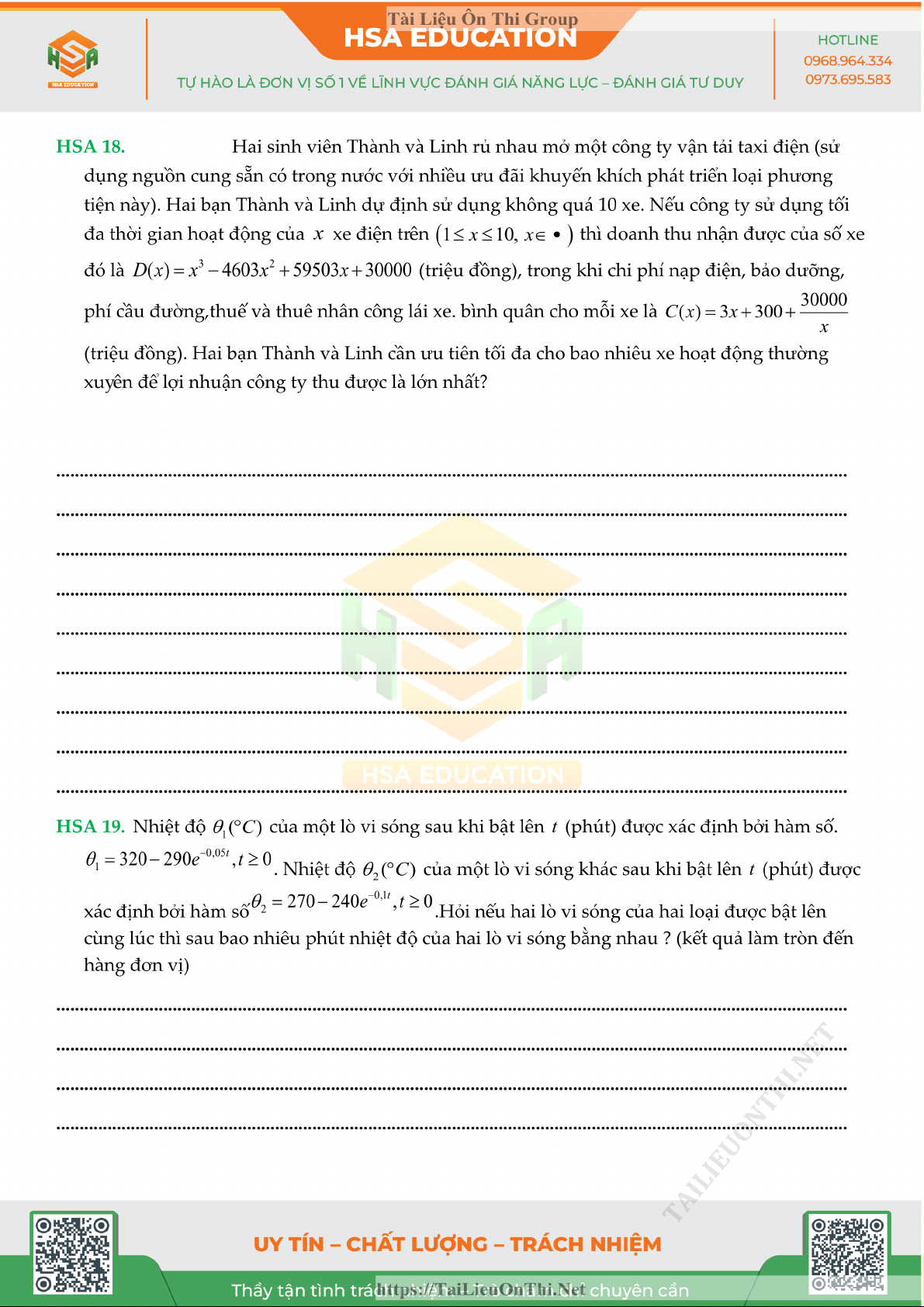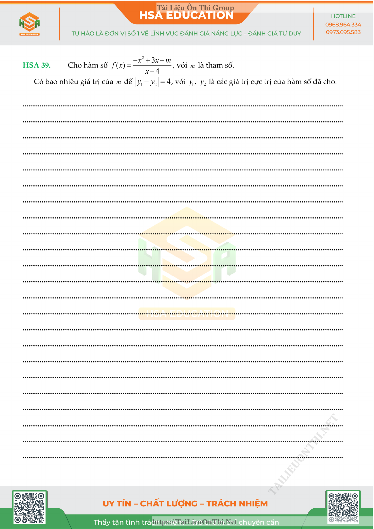 Đề đánh giá năng lực - HSA số 5 môn Toán