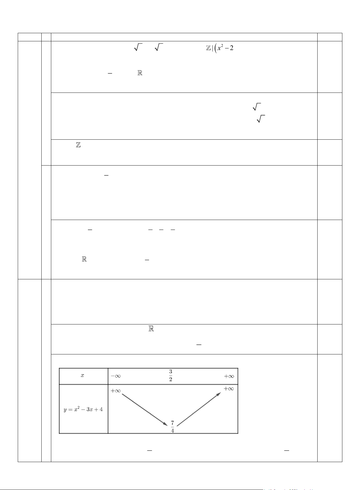 Khi đó ta có bảng biến thiên: 0,5 2 (1,5 điểm) 3 3