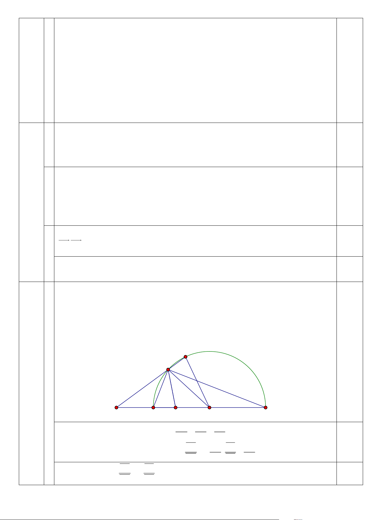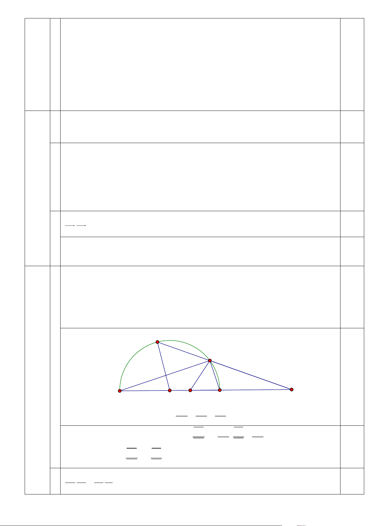 Ta có AE ⊥ AD nên đường tròn đường kính DE có tâm là I và đi qua A , do đó 0,5 . CD CE = . CA CM (4). Từ (3) và (4) suy ra . CB CI = .