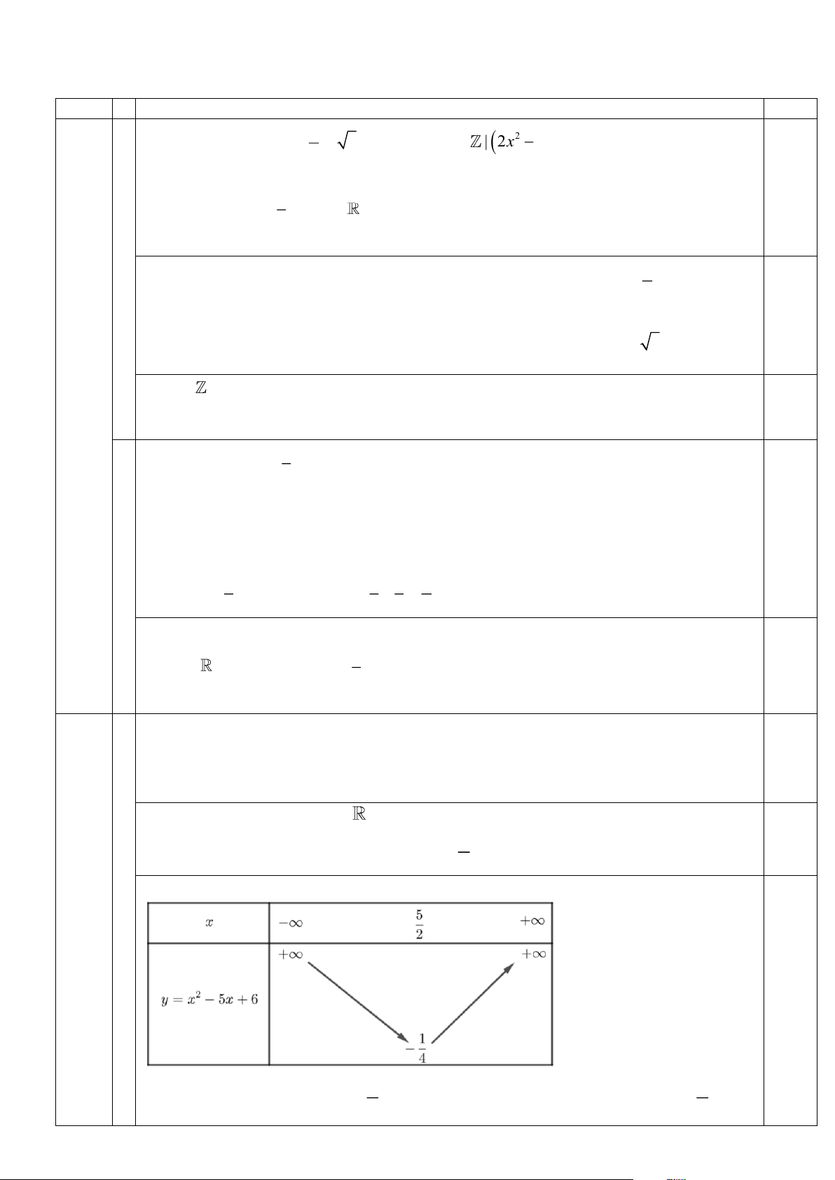 Khi đó ta có bảng biến thiên: 2 0,5 (1,5 điểm) 5 5