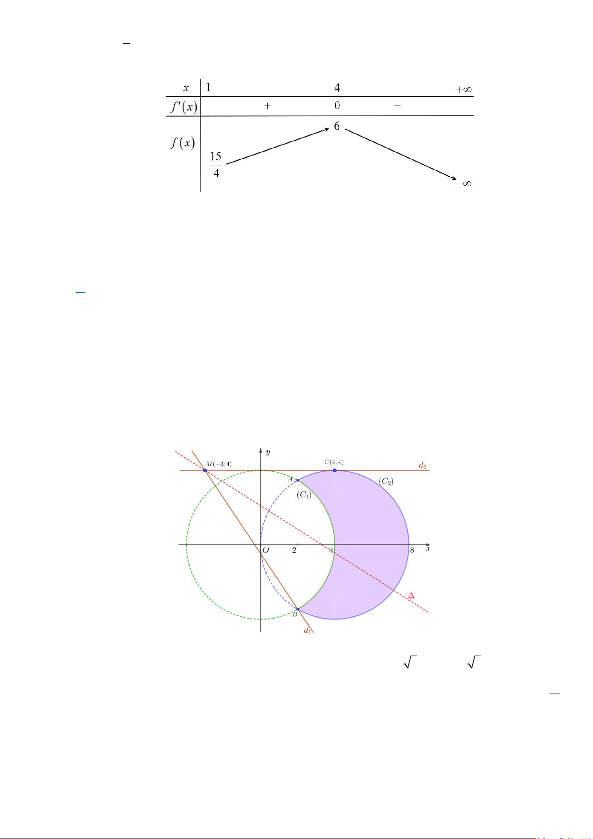 f '(x) = − x + 2 ; f '(x) = 0 x = 4 . 2 Bảng biến thiên: