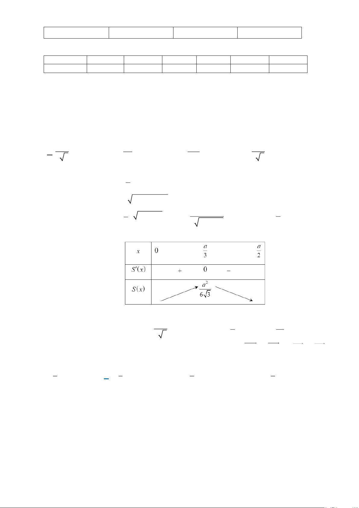 Hạ HF ⊥ SE (F SE) AB ⊥ SH Do ⊥ ( ) ⊥ ⊥ ( ) a AB SHE AB HF HF SAB HF = . AB ⊥ HE 2 2 1 1 1 1 1 1 1 1 3 a Ta có: 2 = + = − = − = HS = 2 2 2 2 2 2 2 2 2 HF HS HE HS HF HE a a a 3 2 a 3 SH = . 3 3 1 1 a 3 2 3a Vậy 2 V = S .SH = .6a . = . S.ABC 3 A BC 3 3 3