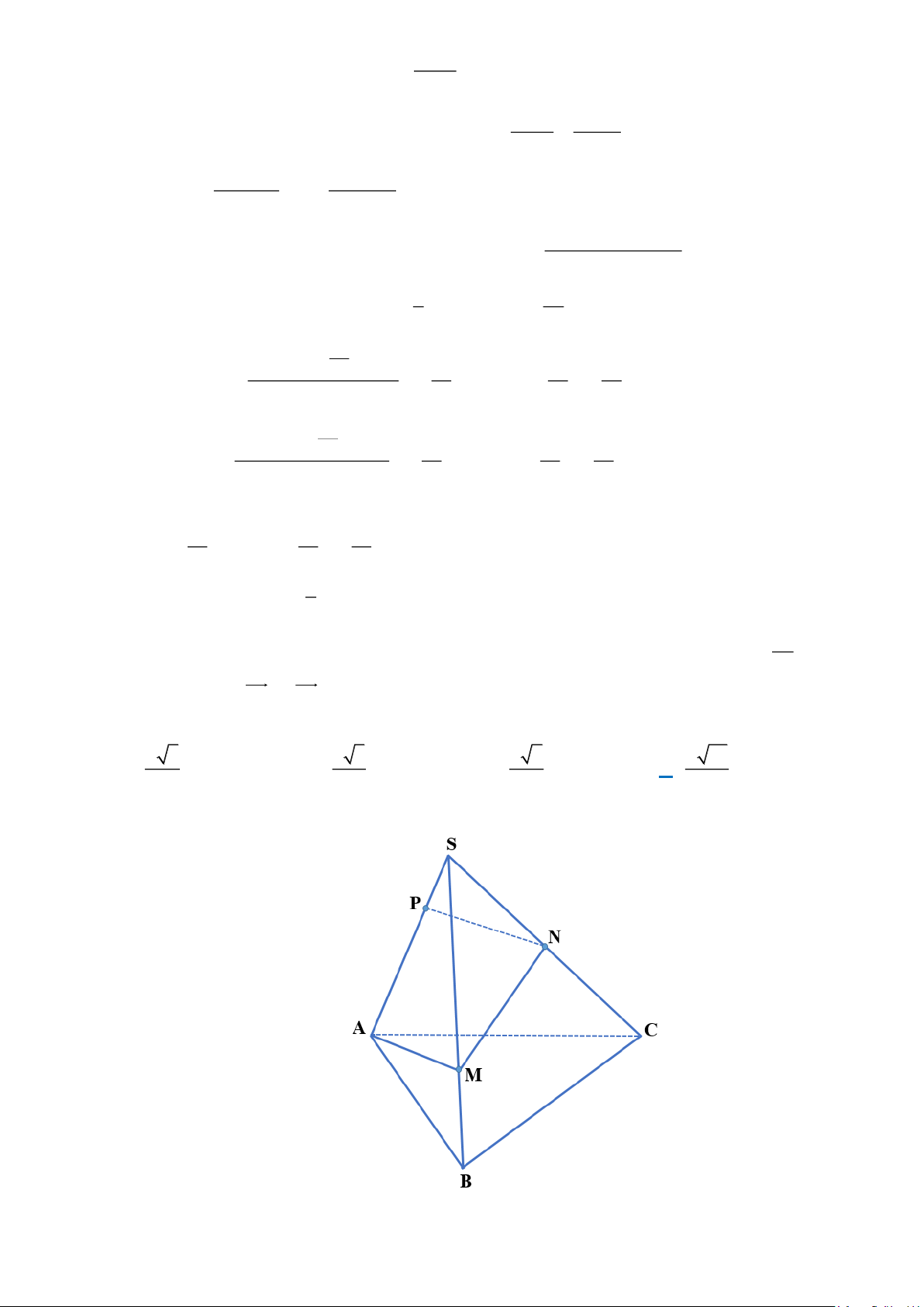điểm thỏa mãn SA = 3SP . Trên các cạnh SB, SC lần lượt lấy các điểm M , N không trùng với các