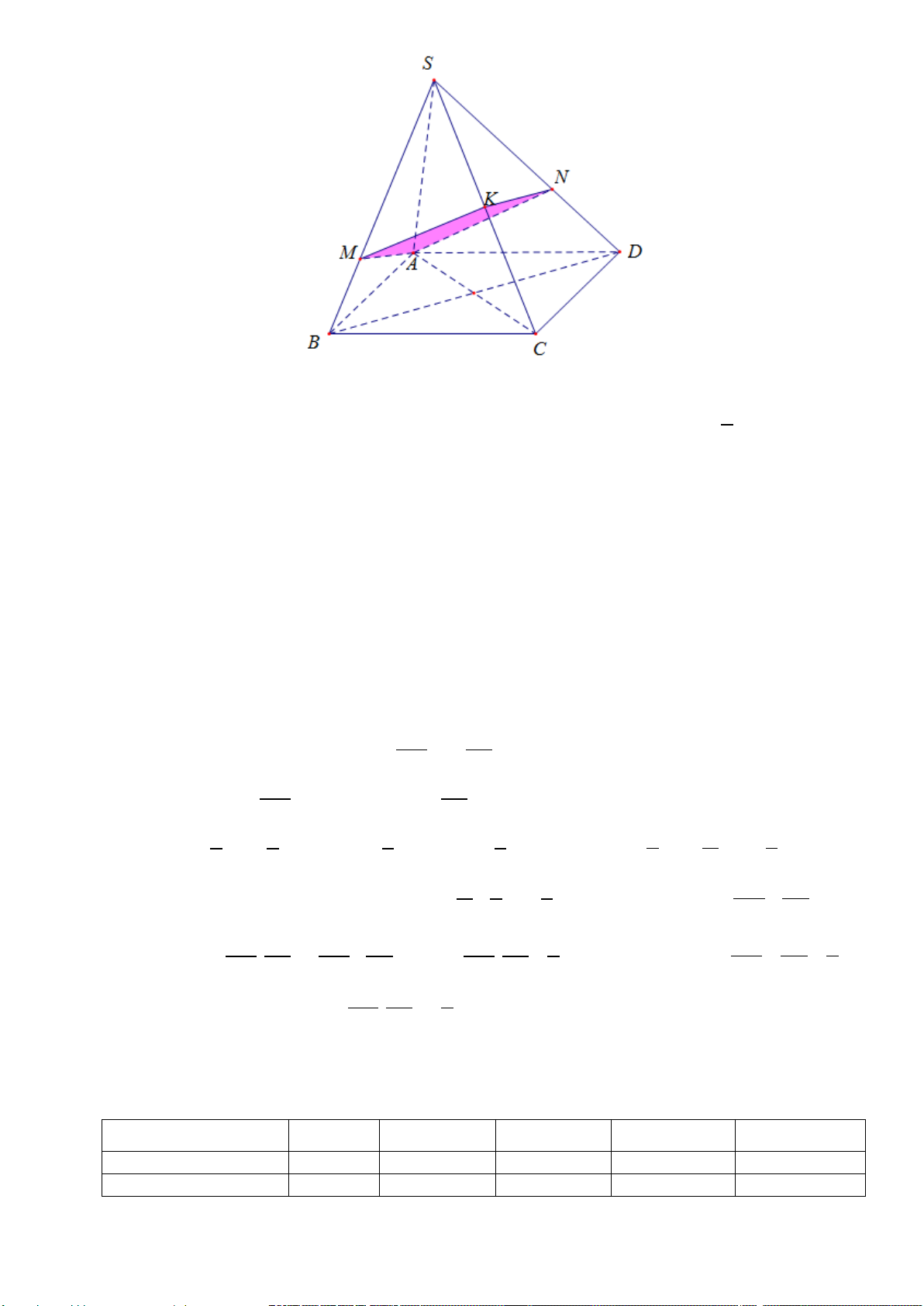 A M , N, K đồng phẳng nên 1 + + − =1 ⇔ m + n = 3 . Vậy + = 3. 2 2 2 SM SN 2 SB SD 3
