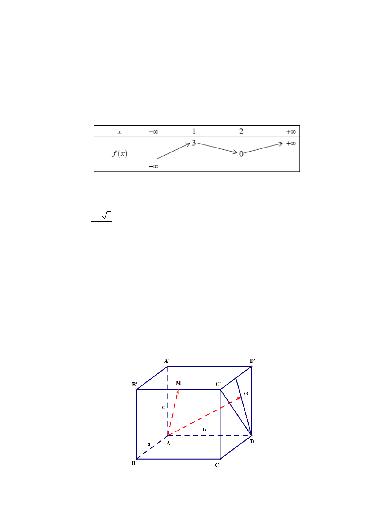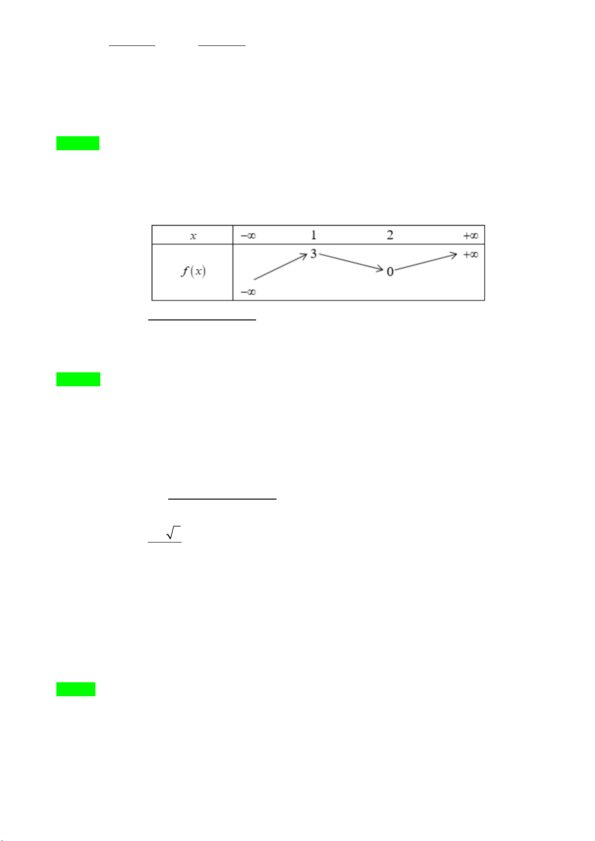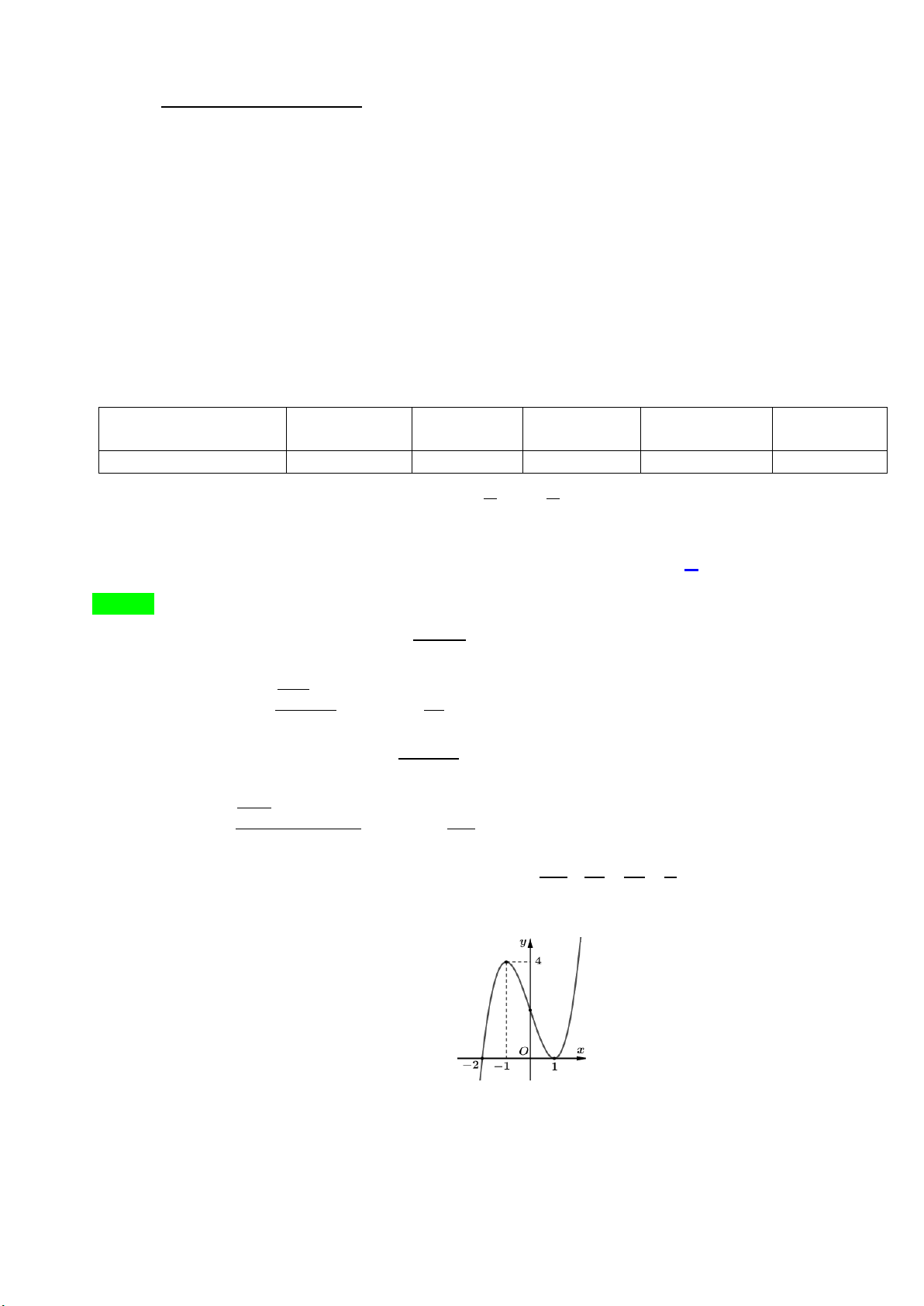 Câu 7: Cho hàm số y = f (x) xác định, liên tục trên và có bảng biến thiên như hình bên dưới. 1