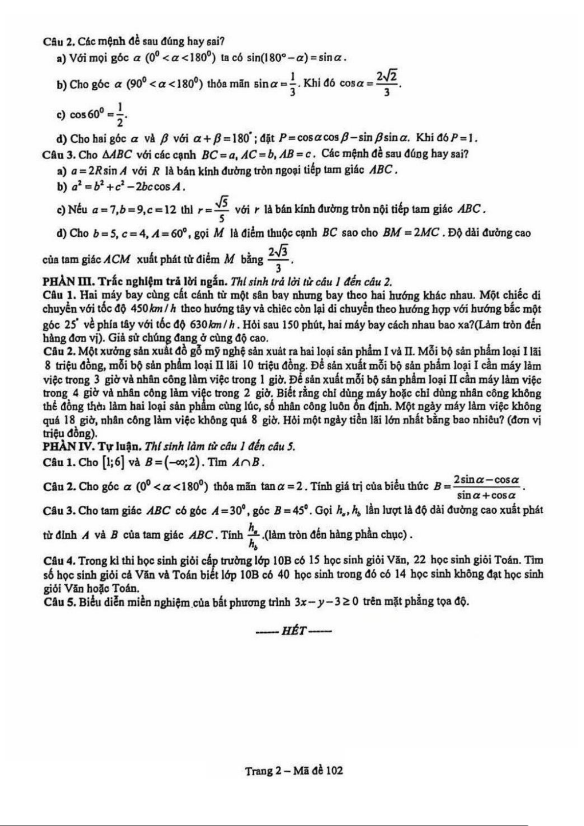 Xin giới thiệu đến quý thầy, cô giáo và các em học sinh đề kiểm tra giữa học kì 1 môn Toán 10 năm học 2025 – 2026 trường THPT chuyên Lương Văn Tụy, tỉnh Ninh Bình. Đề thi gồm 12 câu trắc nghiệm nhiều phương án lựa chọn + 03 câu trắc nghiệm đúng sai + 02 câu trắc nghiệm trả lời ngắn + 05 câu tự luận, thời gian làm bài 90 phút.