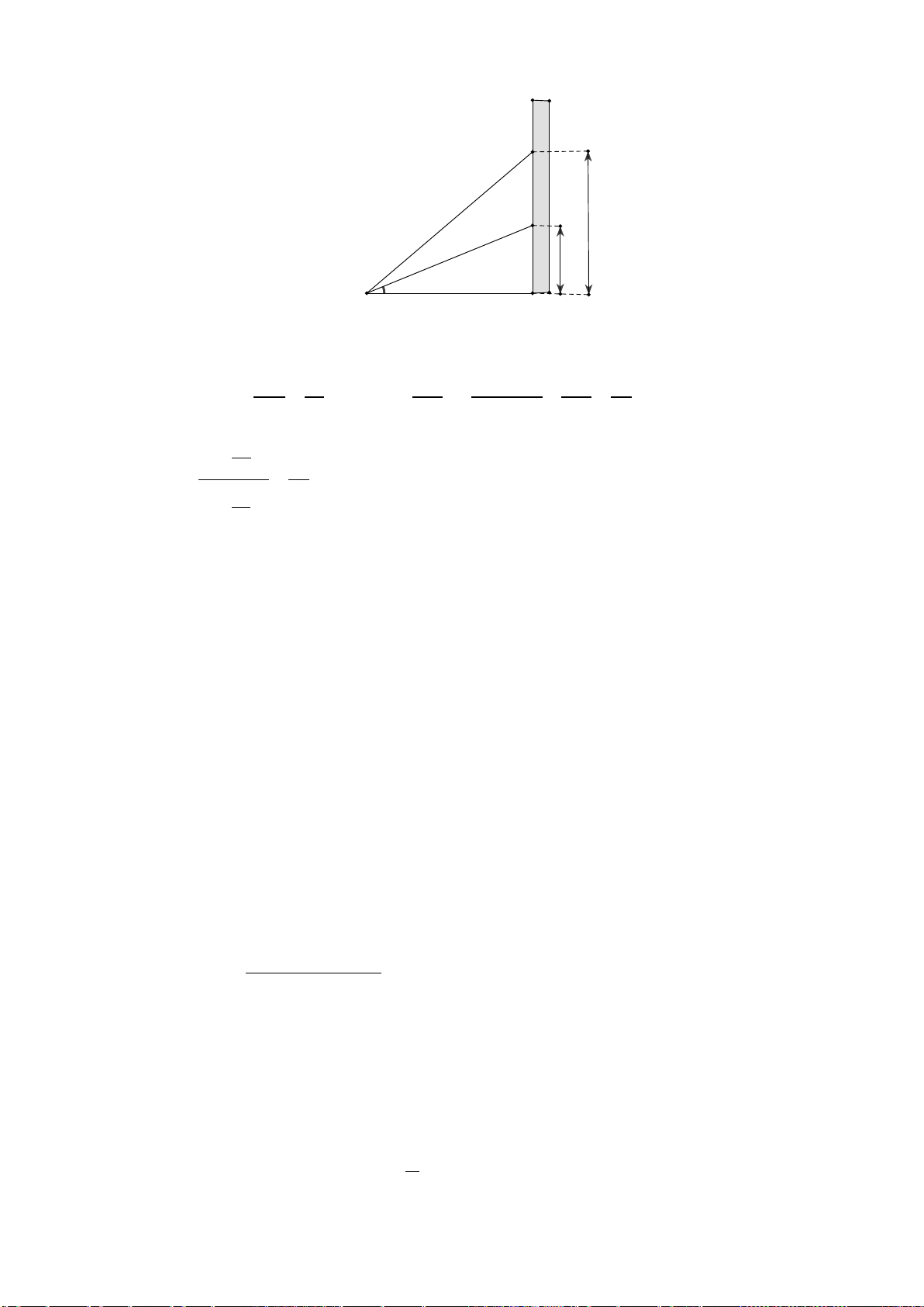 bức tường bao nhiêu mét? Tường B C 25 m 12 m A α Vận động viên H Lời giải α Ta có: 12 tan CH α = = ; BH 2 tan BH 25 tan 2α = ⇔ = = . AH x 2 x 1− tan α x x 12 2. Suy ra x 25 =