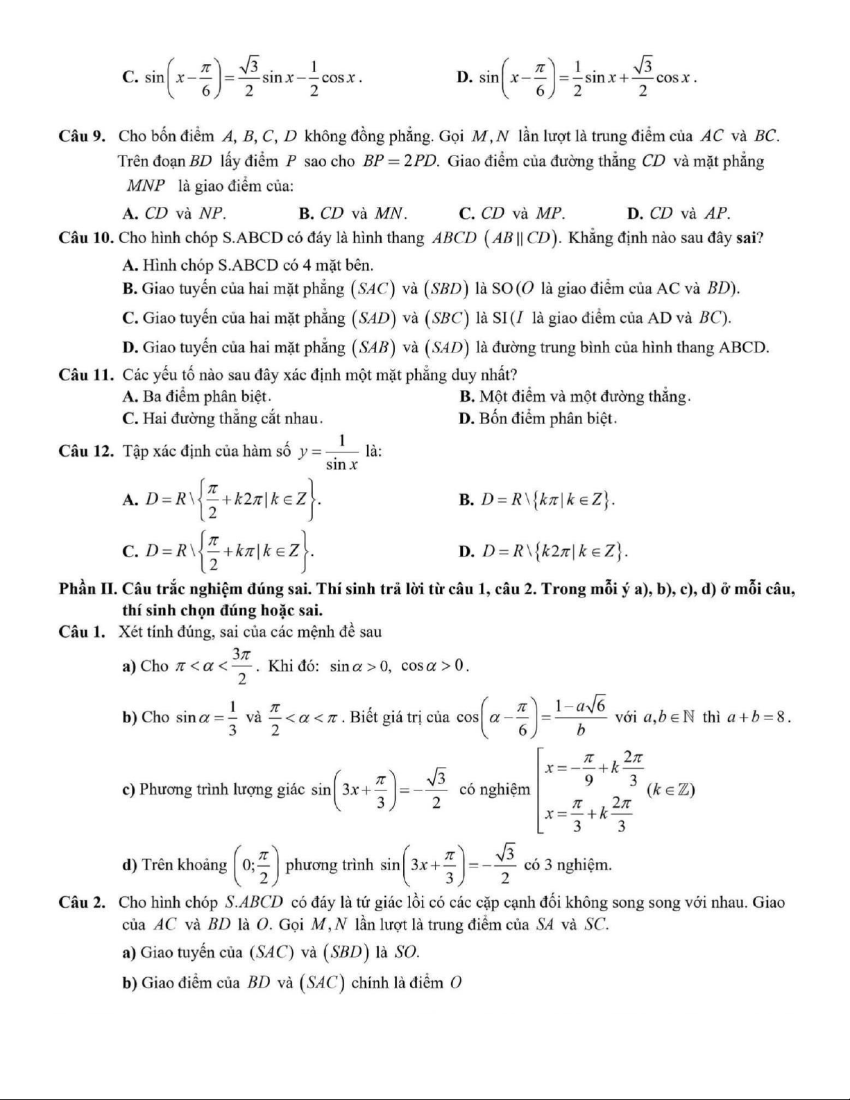 Đề giữa học kỳ 1 Toán 11 năm 2025 – 2026 trường THPT Xuân Trường – Ninh Bình
