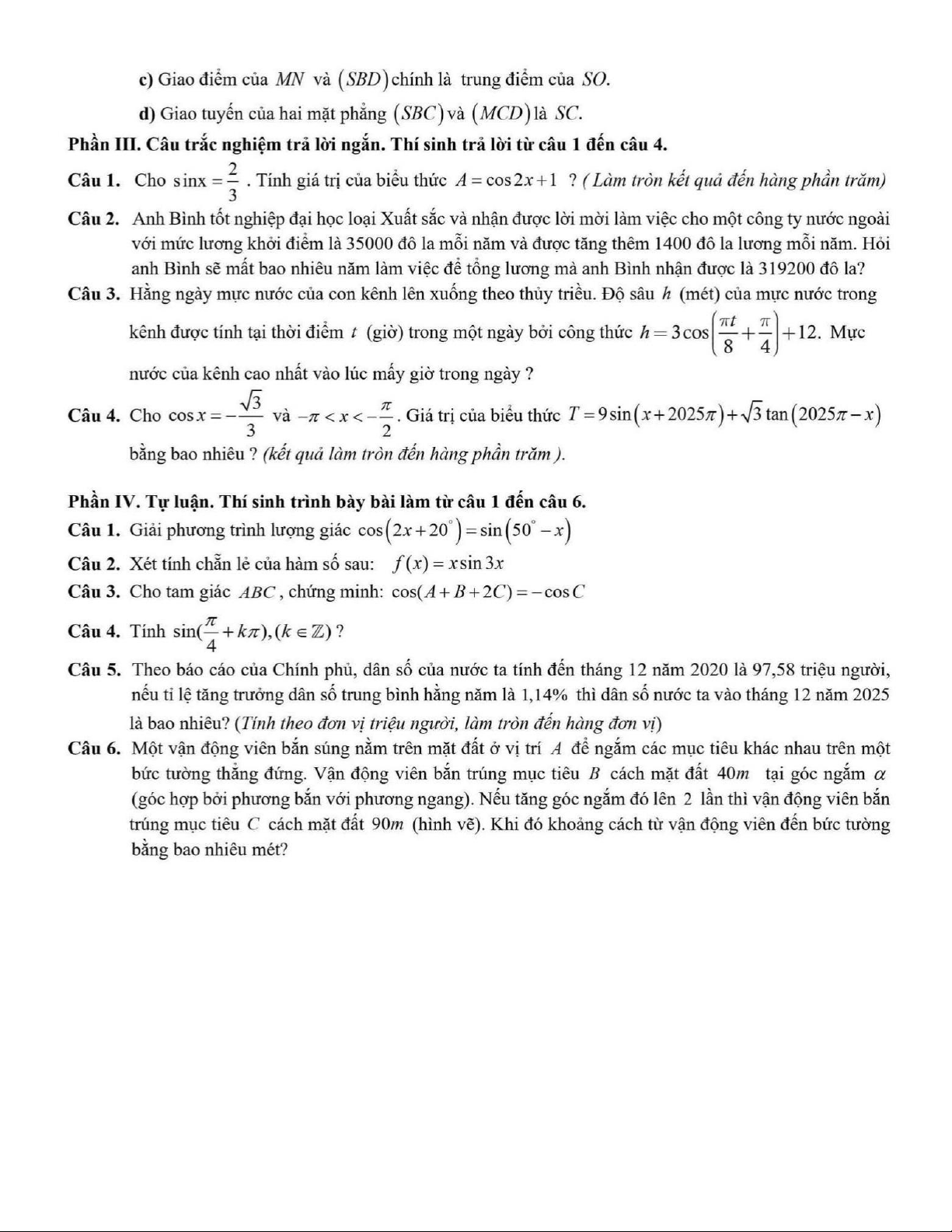 Xin giới thiệu đến quý thầy, cô giáo và các em học sinh đề kiểm tra giữa học kì 1 môn Toán 11 năm học 2025 – 2026 trường THPT Trần Phú – Hoàn Kiếm, thành phố Hà Nội. Đề thi gồm 12 câu trắc nghiệm nhiều phương án lựa chọn + 02 câu trắc nghiệm đúng sai + 04 câu trắc nghiệm trả lời ngắn + 06 câu tự luận, thời gian làm bài 90 phút.