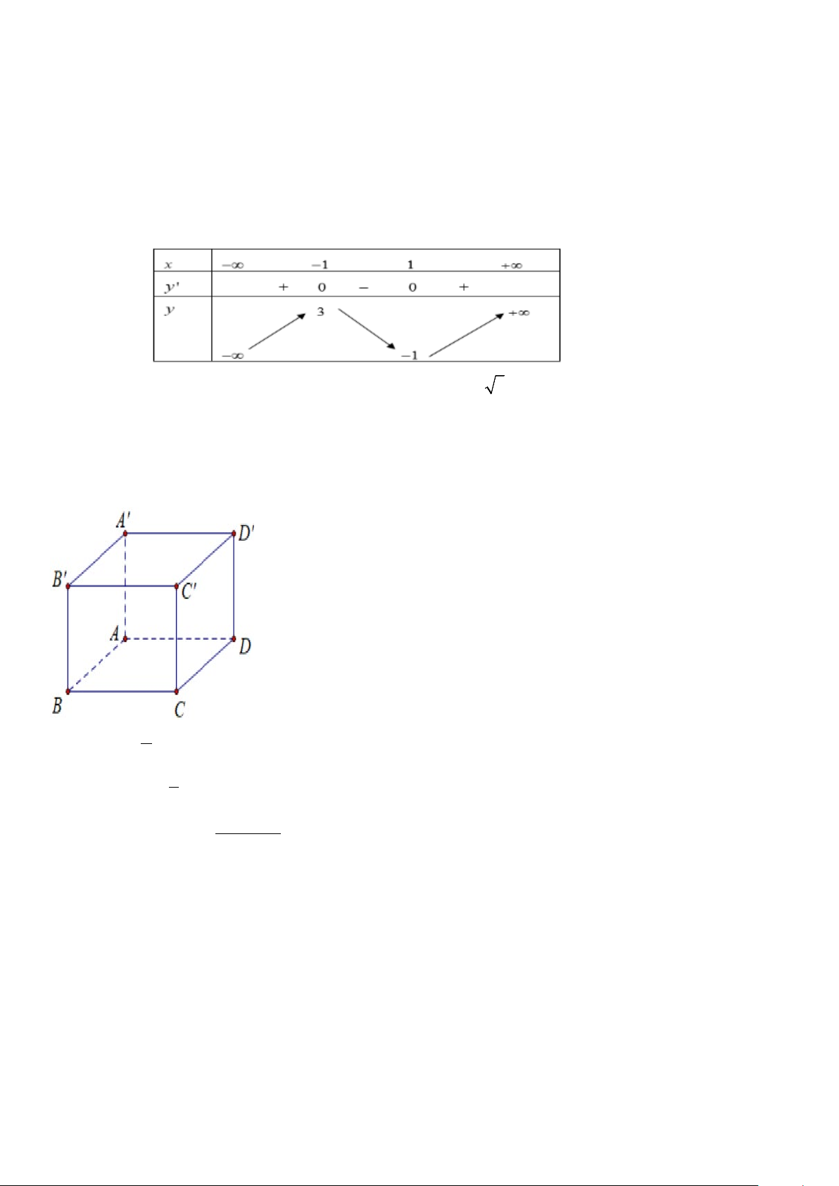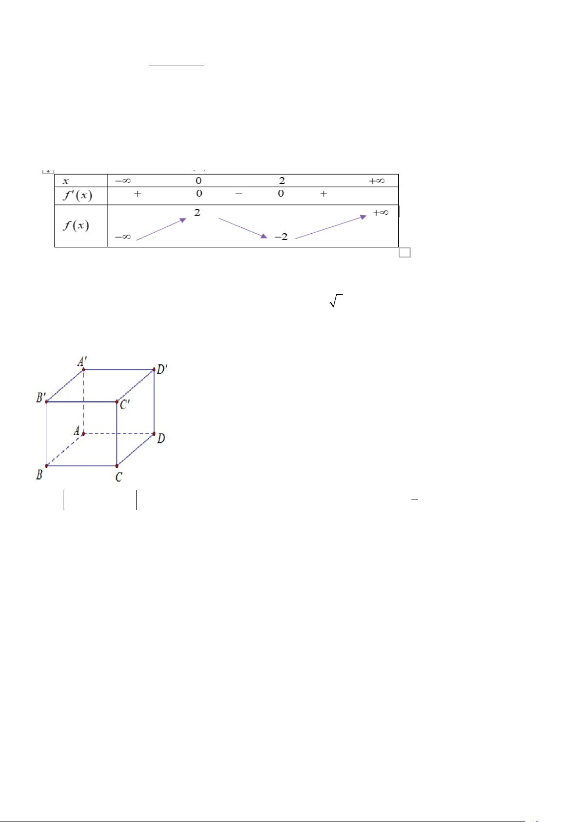 Câu 2. Cho hàm số y = f (x) có bảng biến thiên như sau: