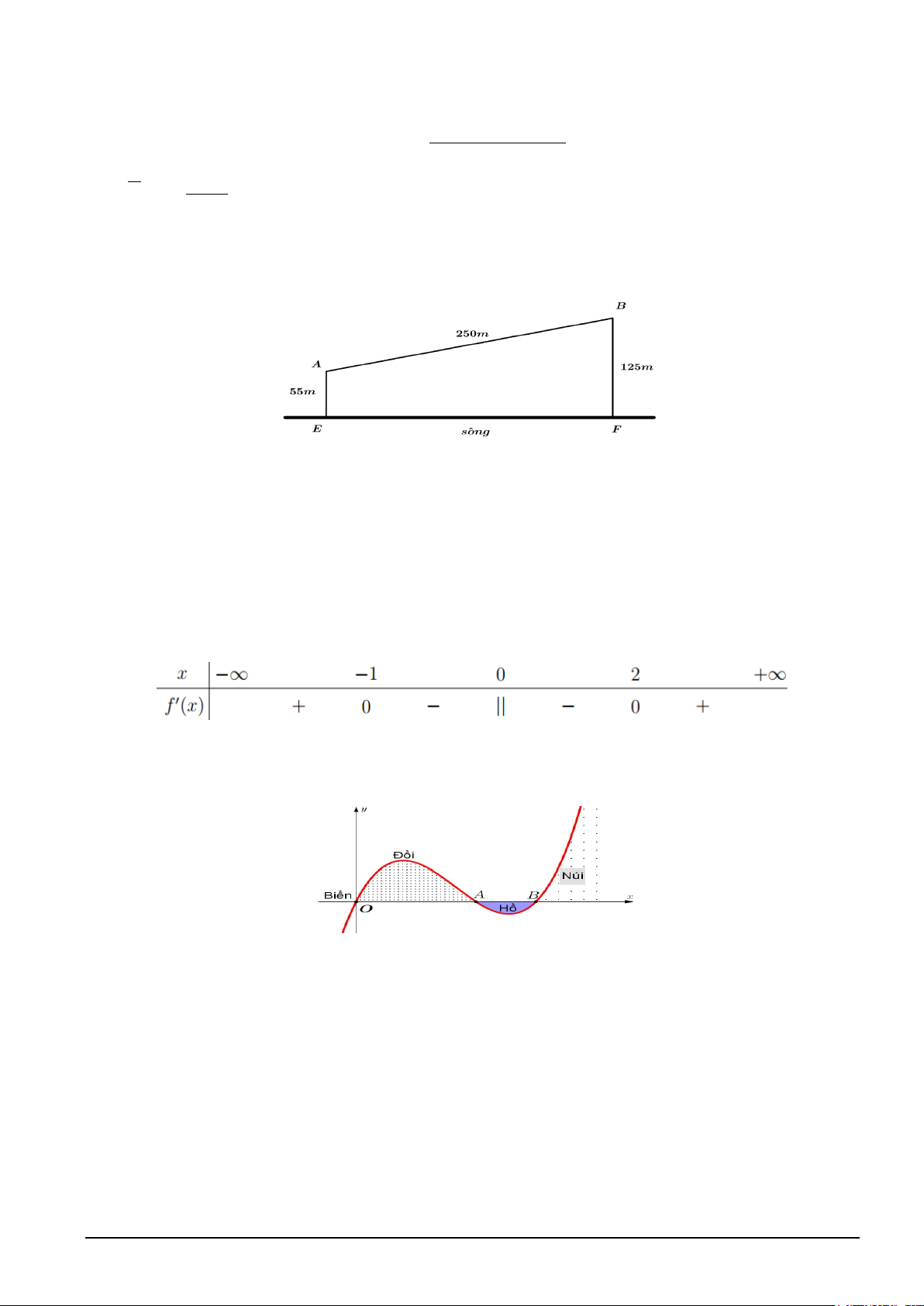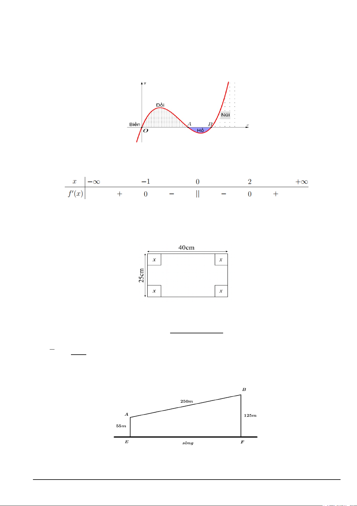 Câu 2: Lát cắt ngang của một vùng đất ven biển được mô hình hoá thành một hàm số bậc ba y = f (x)