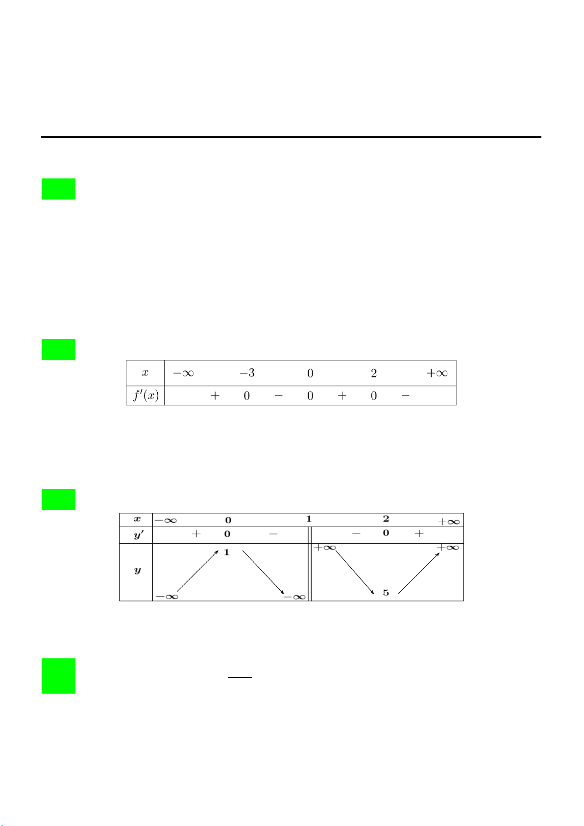 Câu 1: Cho hàm số y = f (x) liên tục trên và có bảng xét dấu đạo hàm như sau: