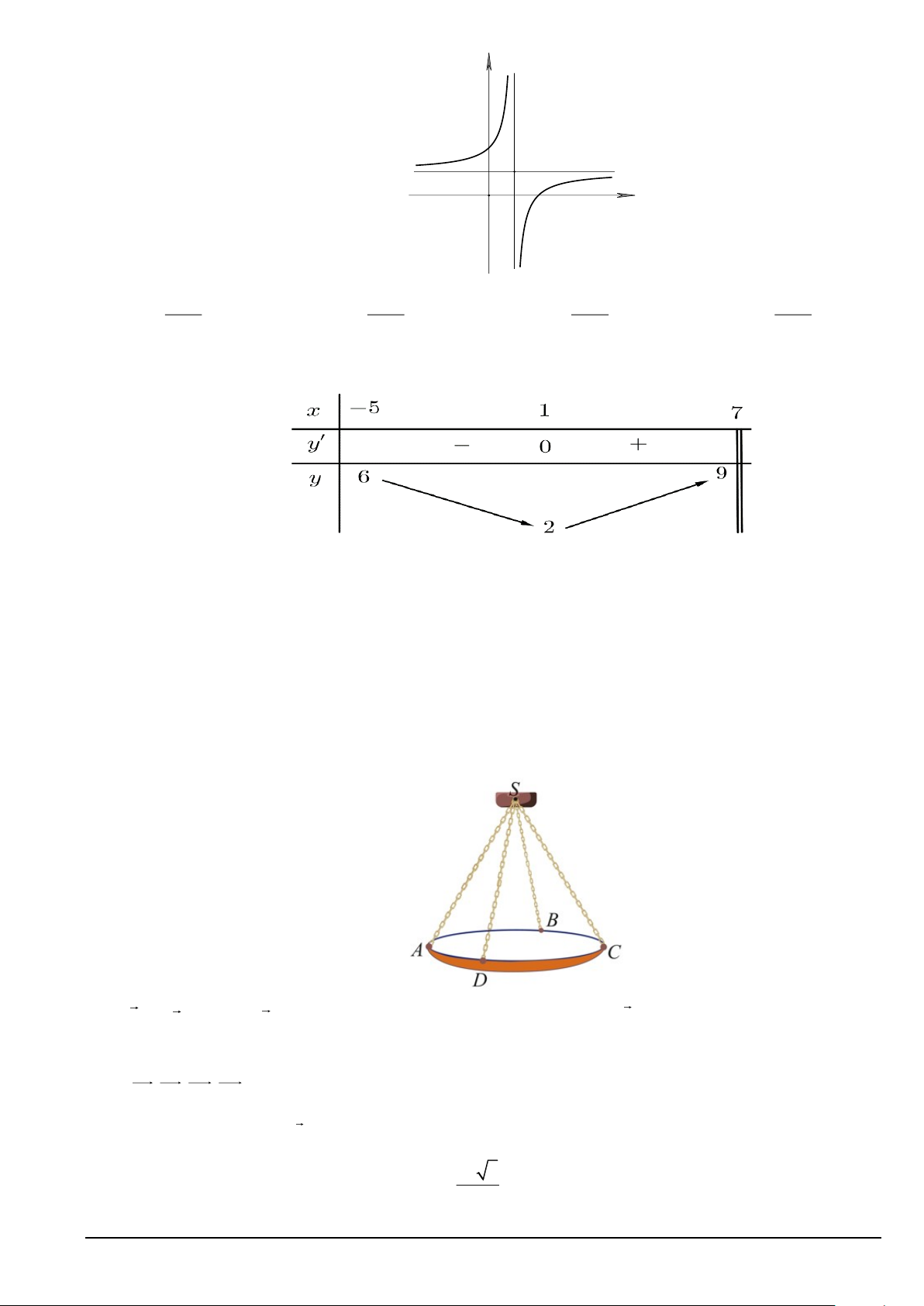 Câu 11. Đường cong trong hình vẽ bên là đồ thị của một trong bốn hàm số sau. Hỏi đó là đồ thị của hàm số nào? Mã đề 101 Trang 2/5 y 2 1 O 1 2 x x − 2 x + 2 x + 2 x − 2 A. y = . B. y = . C. y = . D. y = . x +1 x − 2 x −1 x −1