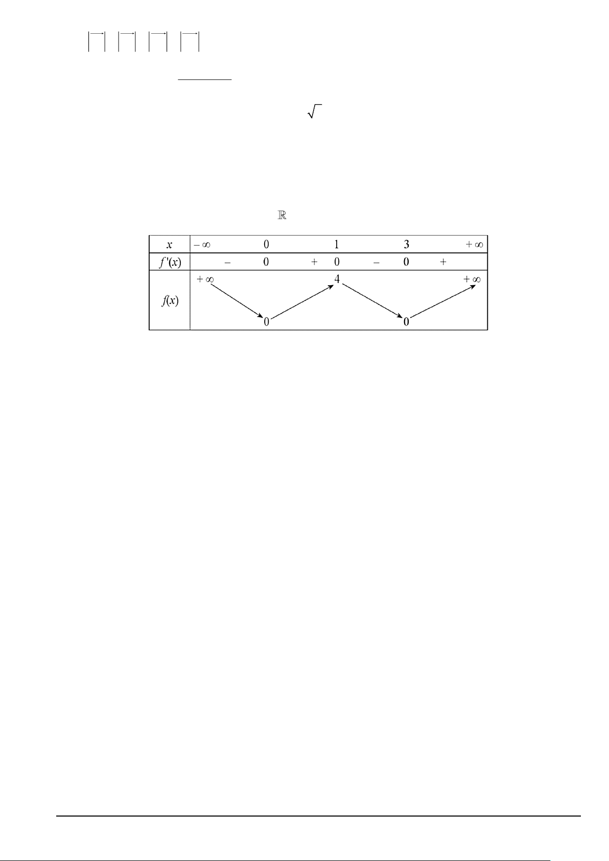 Câu 4. Cho hàm số y = f ( x) xác định trên và có bảng xét dấu đạo hàm như sau: