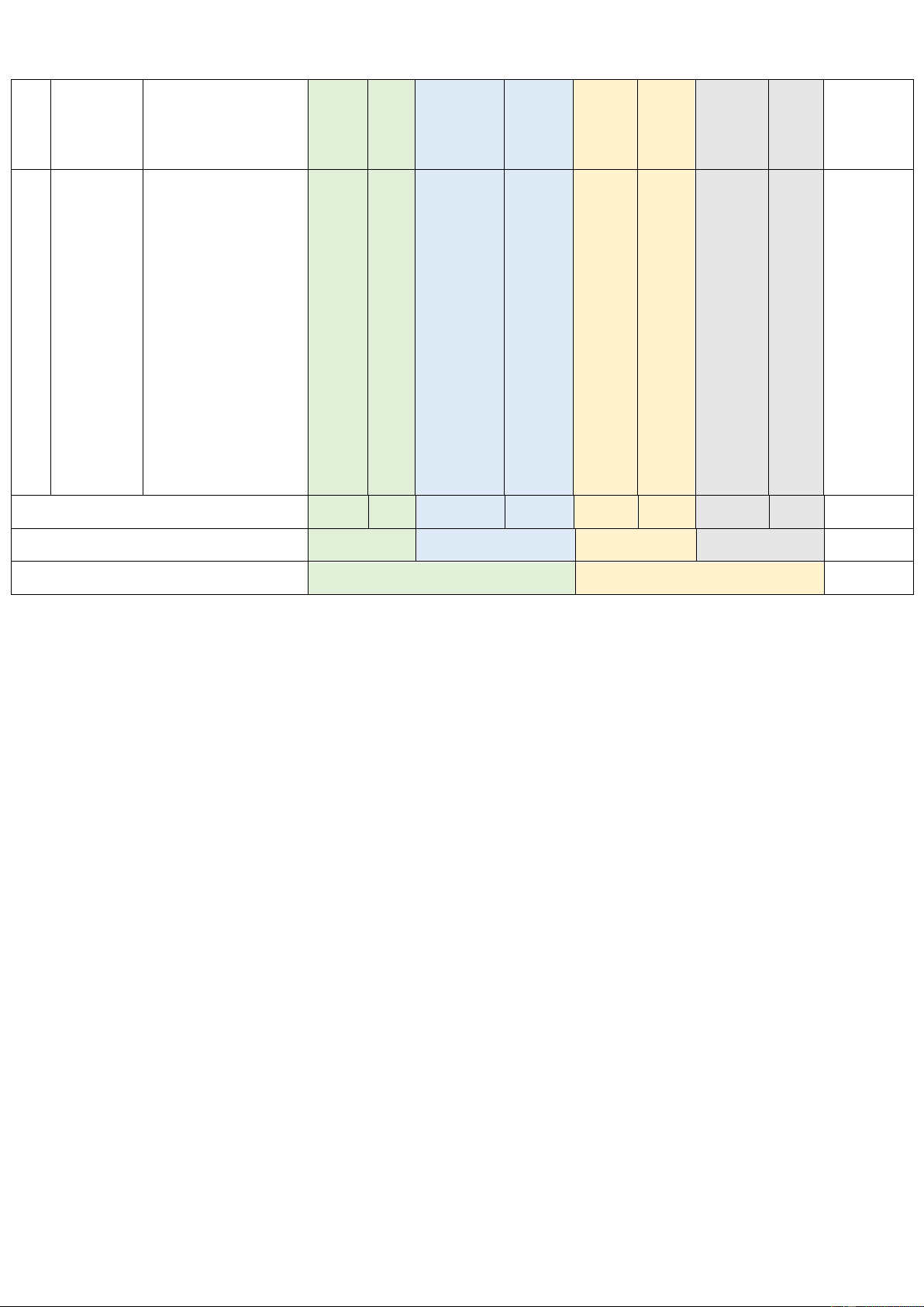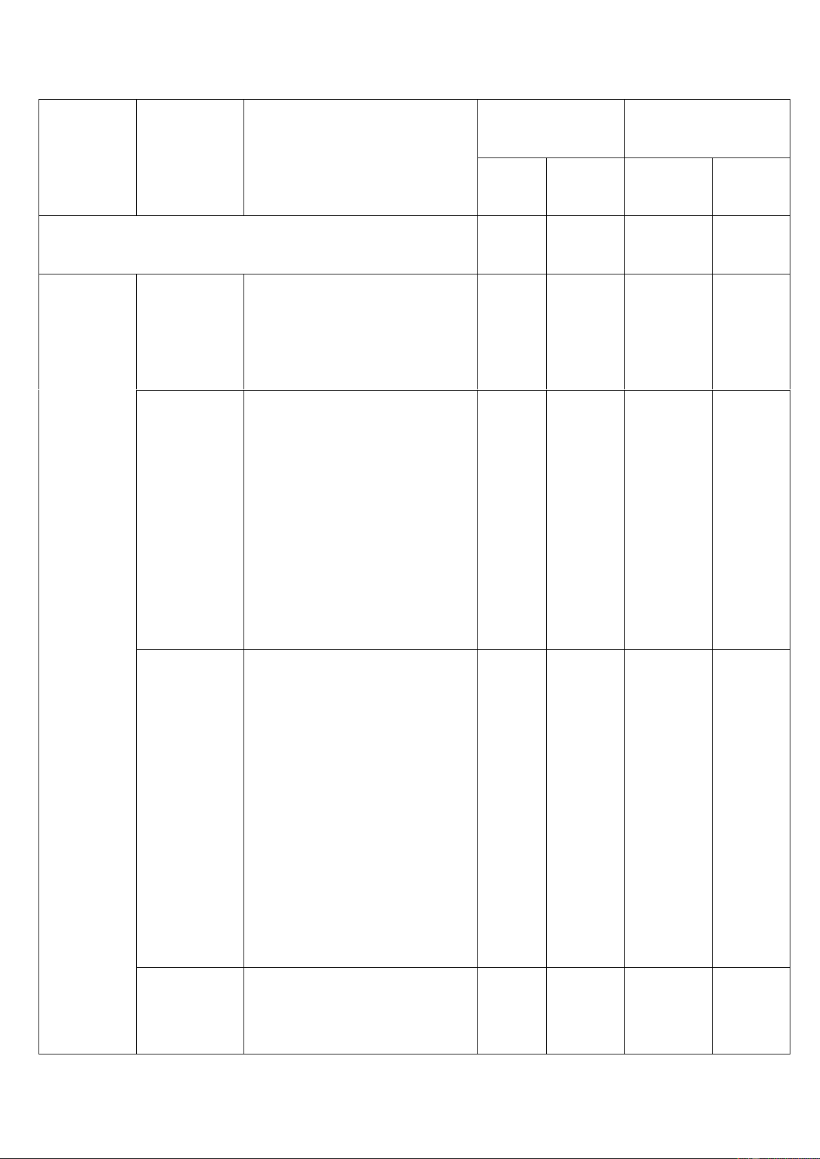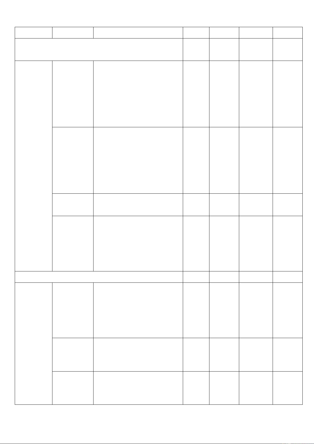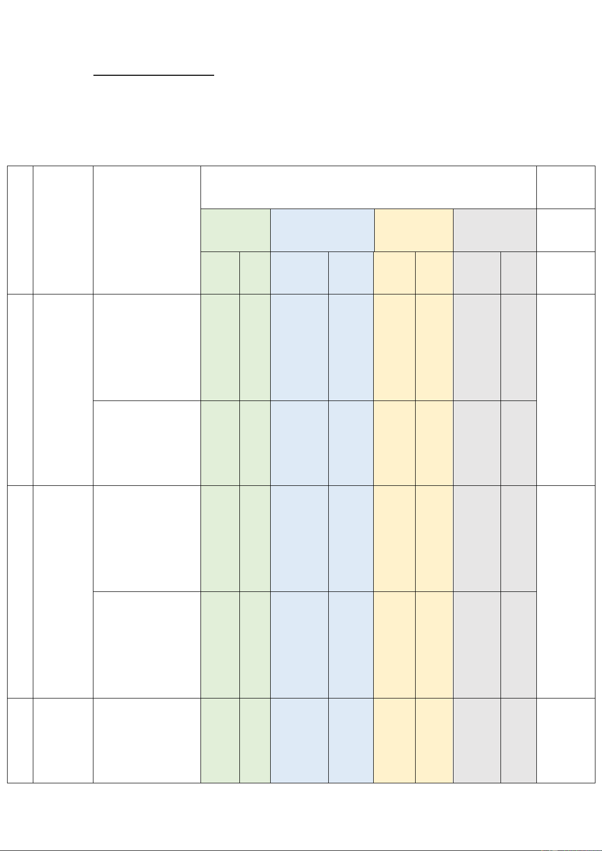 Mức độ đánh giá điểm T Nội dung/Đơn vị Vận dụng Chủ đề Nhận biết Thông hiểu Vận dụng T kiến thức cao TN TNK TNK TL TNKQ TL TL TL KQ Q Q 1 Số tự Các phép tính nhiên với số tự nhiên. 1 3 Phép tính luỹ (0,5 (1,5đ) thừa với số mũ tự đ) nhiên. Tính chia hết 42,5% 1 1 1 trong tập hợp các (0,25 (1,5 (0,5 số tự nhiên. Số đ) đ) đ) nguyên tố 2 Số Số nguyên âm và