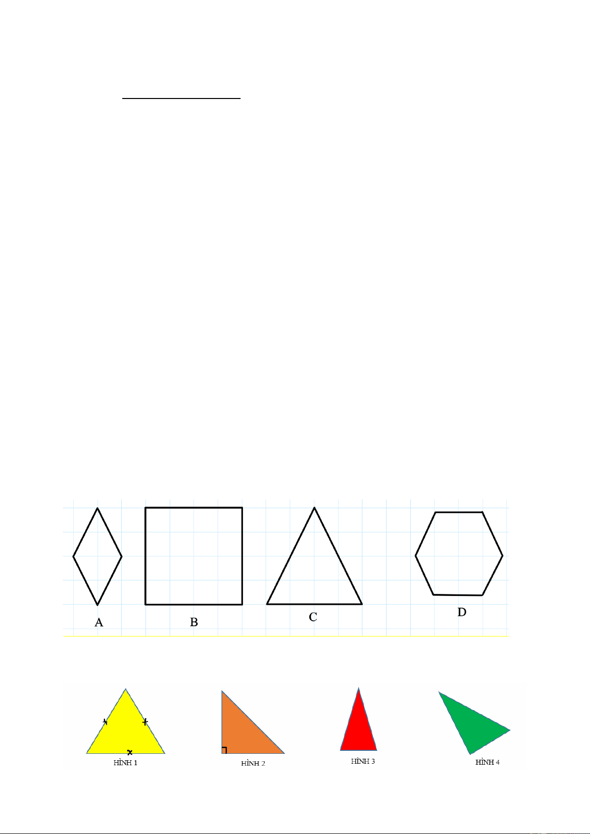 Câu 8. Trong các hình sau, hình nào là tam giác đều ? A. Hình 1 B. Hình 2 C. Hình 3. D. Hình 4