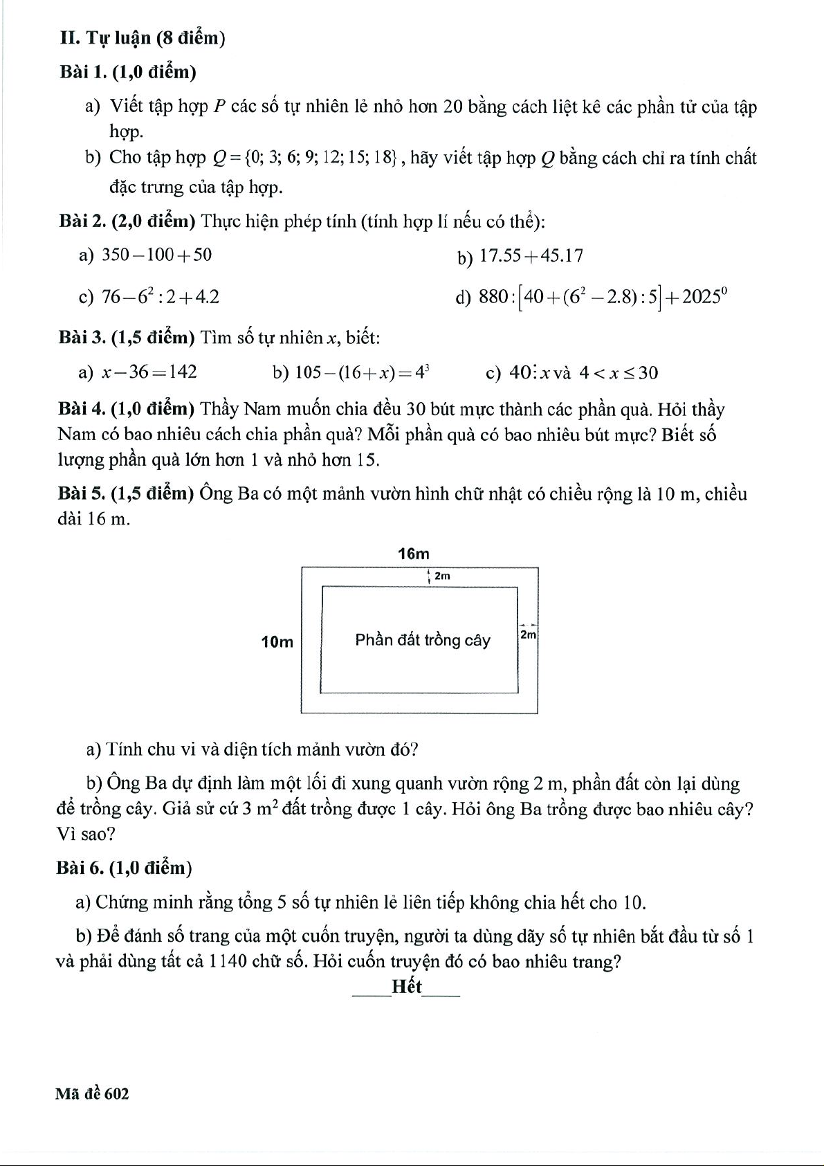 Đề giữa học kỳ 1 Toán 6 năm 2025 – 2026 trường THCS Lý Tự Trọng – Đà Nẵng
