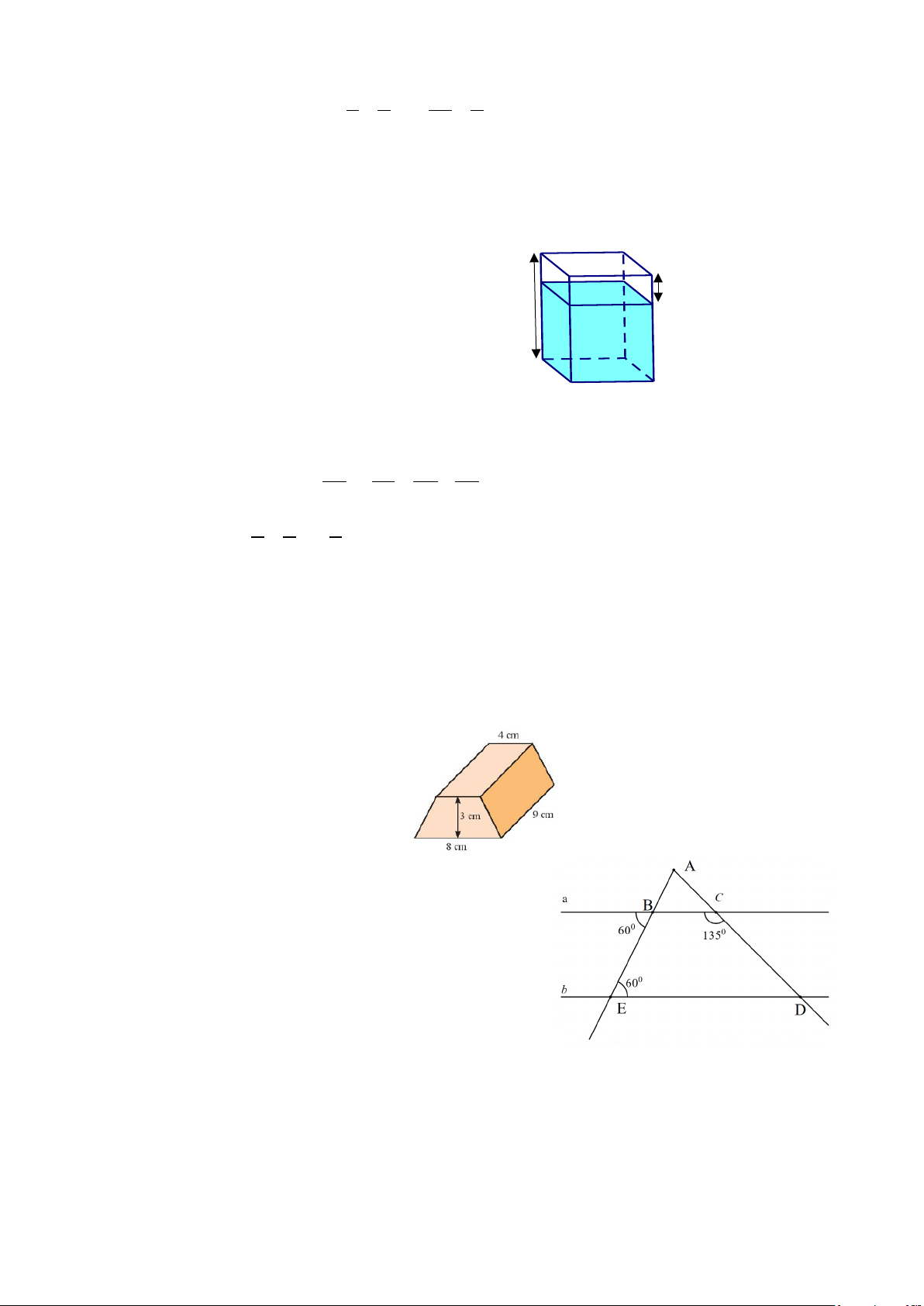 Câu 20: Một hình lăng trụ có kích thước đáy và chiều cao như hình. Hùng đổ vào đó một lượng