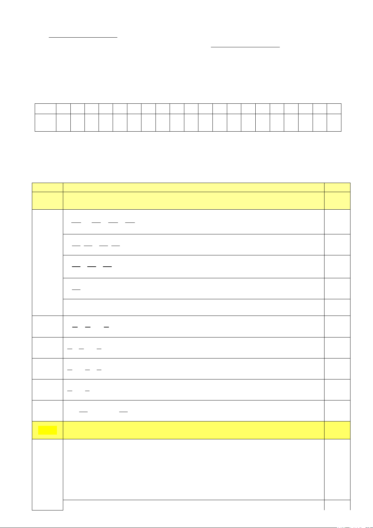 Câu 1 2 3 4 5 6 7 8 9 10 11 12 13 14 15 16 17 18 19 20 Đáp án