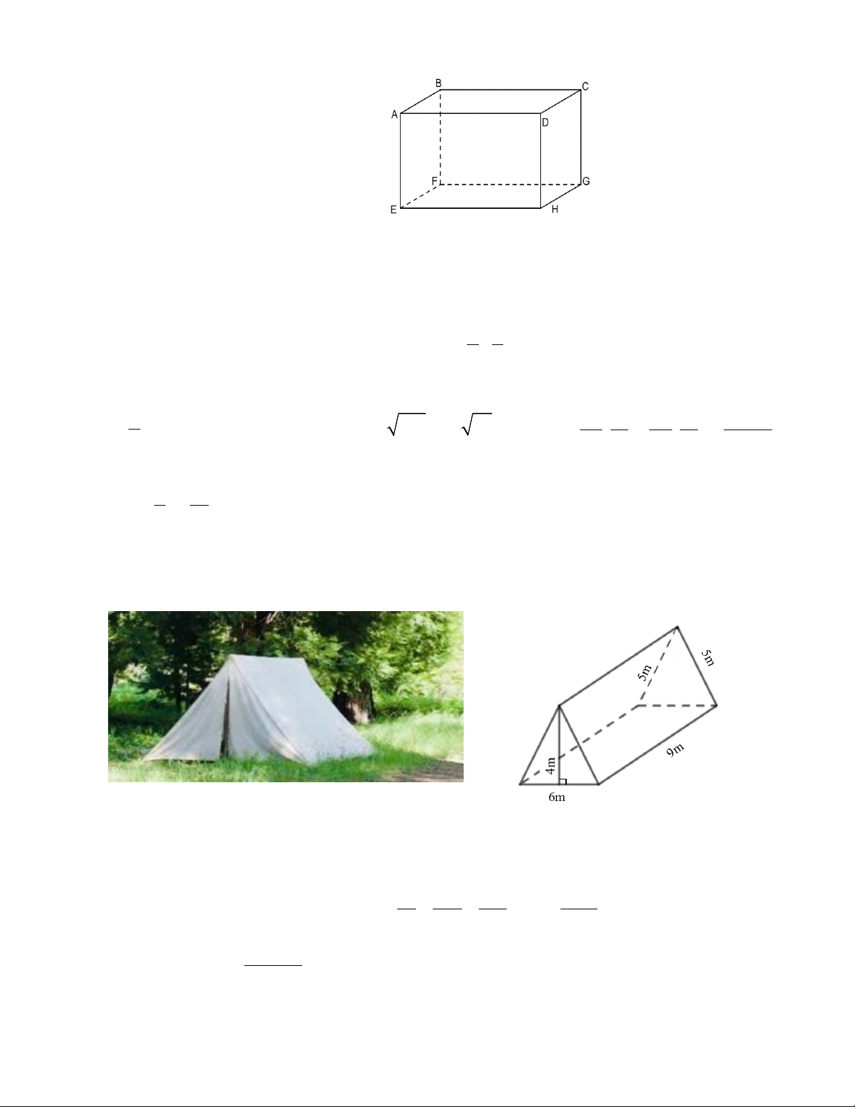 Bài 5 (2 điểm): Một cái lều ở trại hè có dạng lăng trụ đứng tam giác (các số liệu ghi ở hình vẽ):