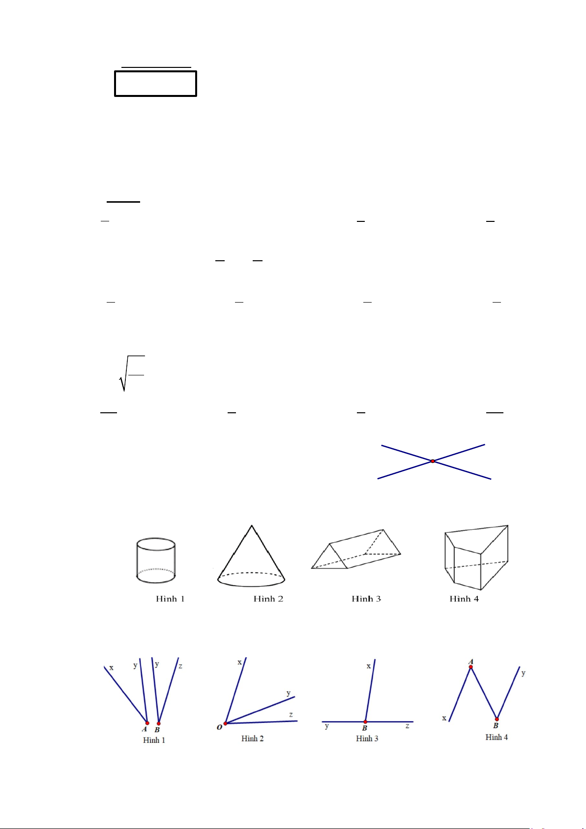 Câu 8: Hình nào dưới đây có hai góc kề nhau nhưng không bù nhau: A. Hình 1 B. Hình 2 C. Hình 3 D. Hình 4