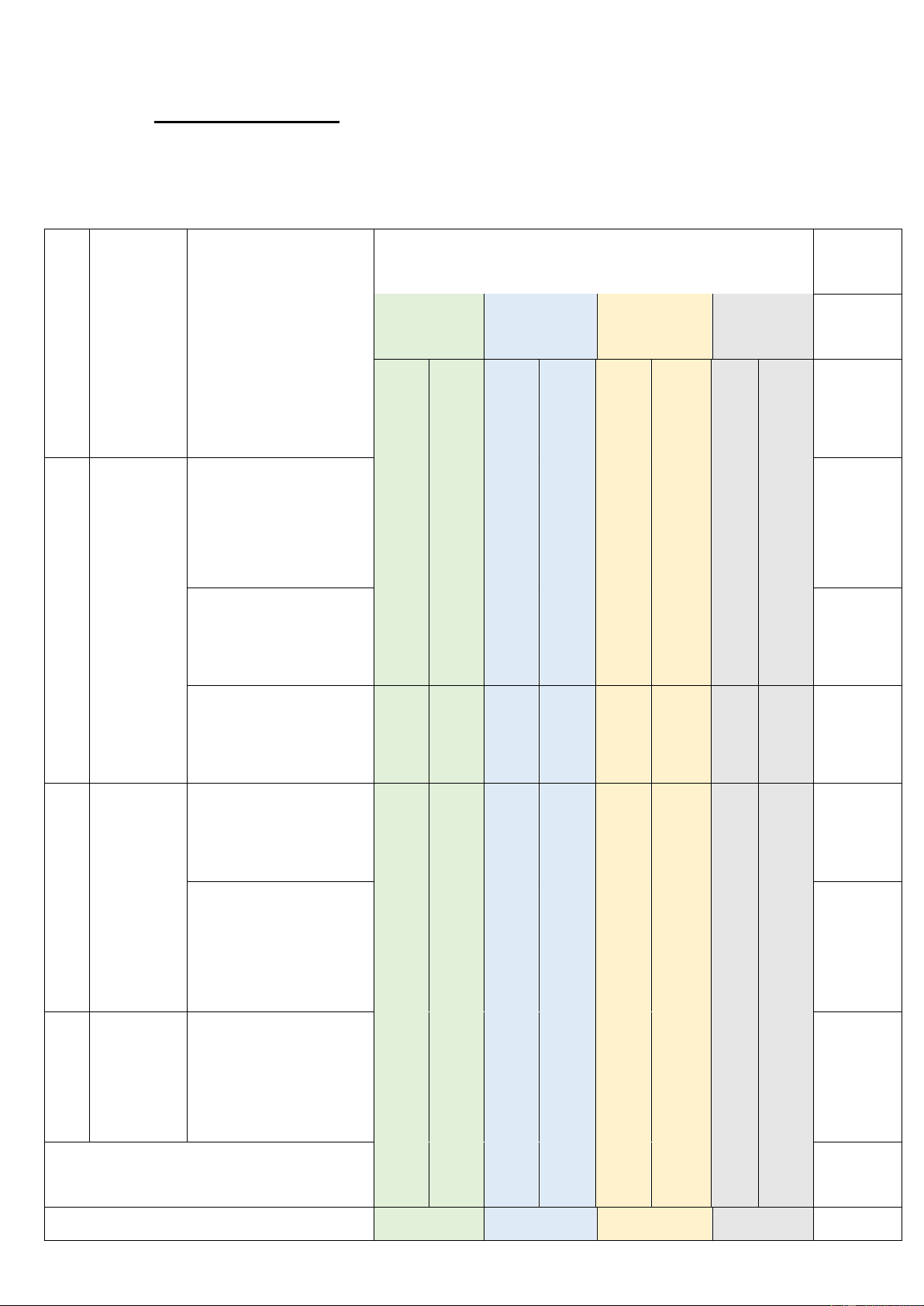 Nội dung/ Đơn vị Nhận biết Vận dụng TT Chủ đề hiểu dụng cao kiến thức TN TN TN TN TL TL TL K TL KQ KQ KQ Q
