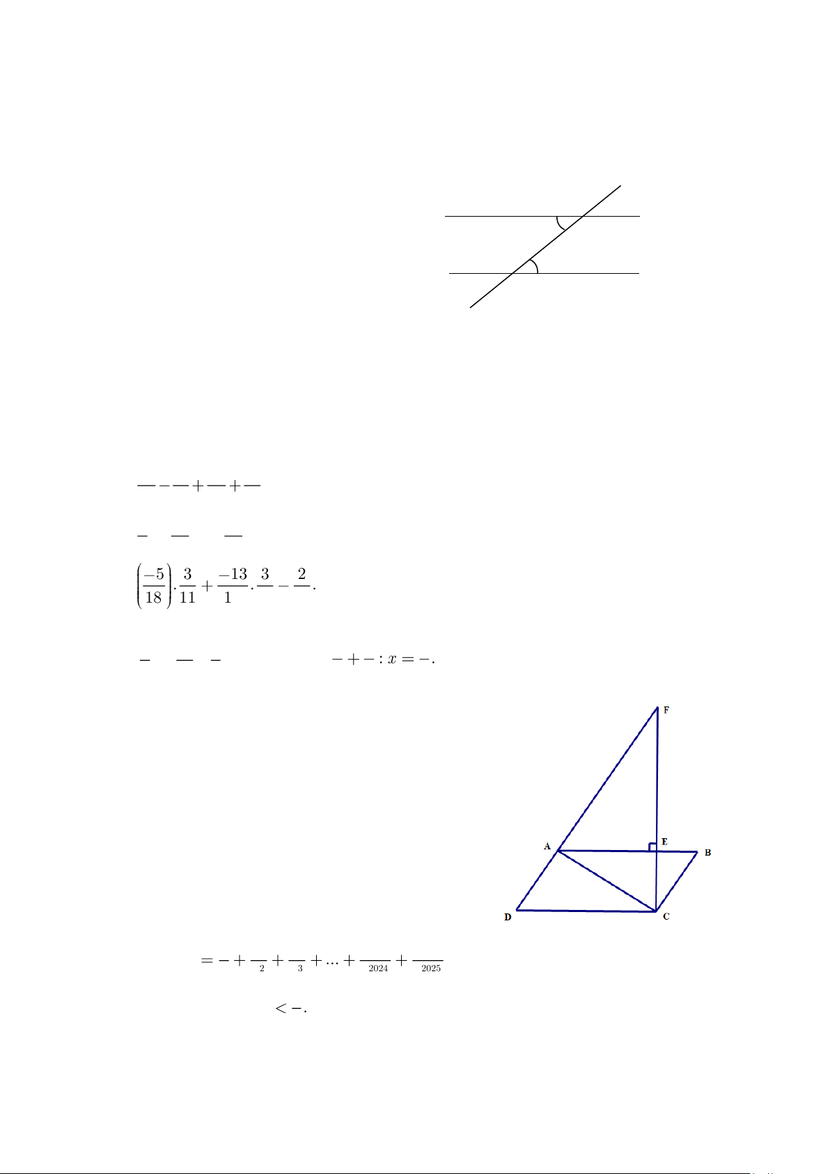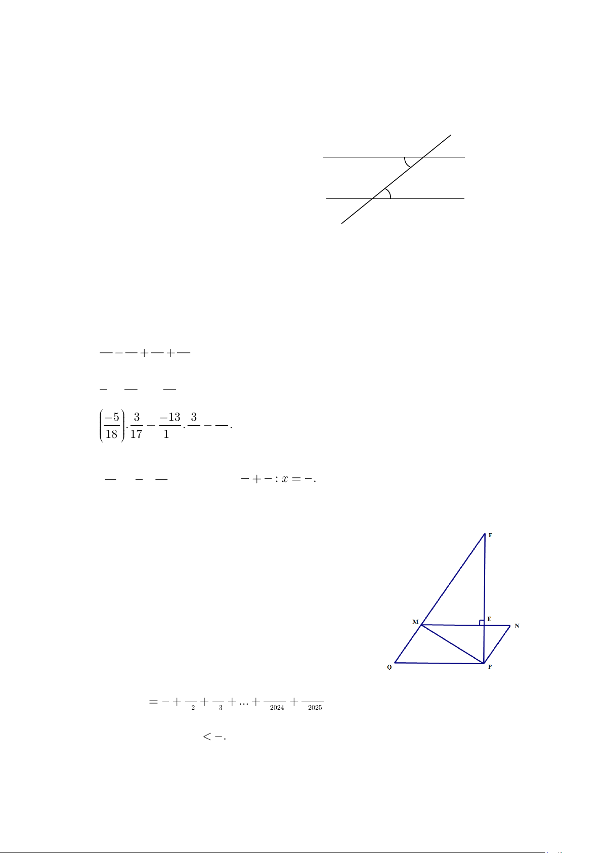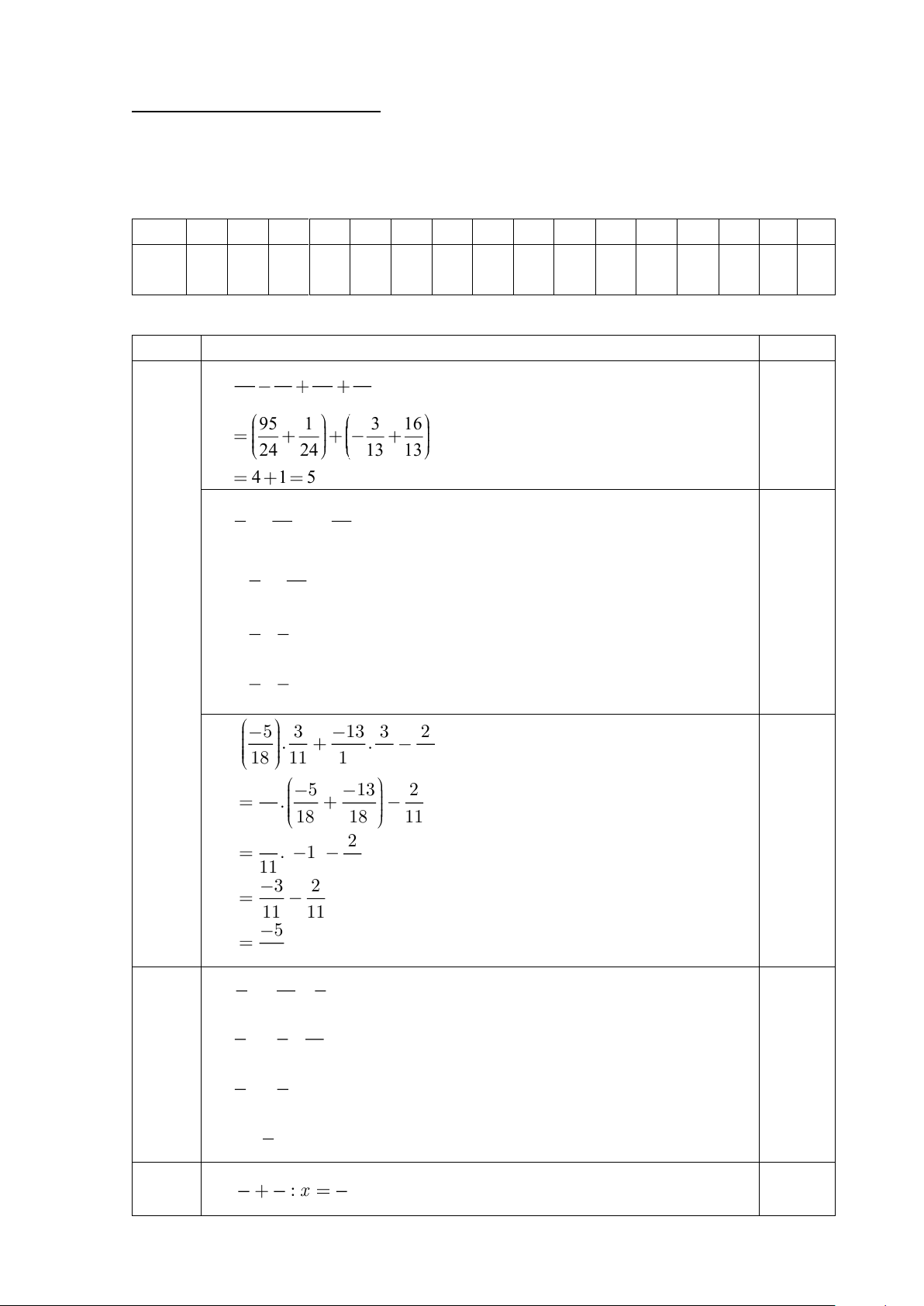 Câu 17. (1,5 điểm) Thực hiện phép tính 95 3 1 16 a) 24 13 24 13 5 3 − − b) 3 1 1 0 − : .6 + 2025 2 2 2 5 3 13 3 2 c) . . . 1 8 11 18 11 11