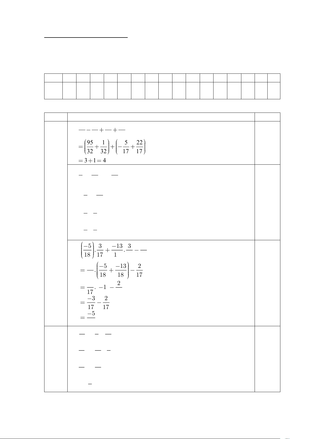 Câu 17. (1,5 điểm) Thực hiện phép tính 95 5 1 22 a) 32 17 32 17 5 3 − − b) 3 1 1 0 + : .6 − 2025 2 2 2 5 3 13 3 2 c) . . . 1 8 17 18 17 17