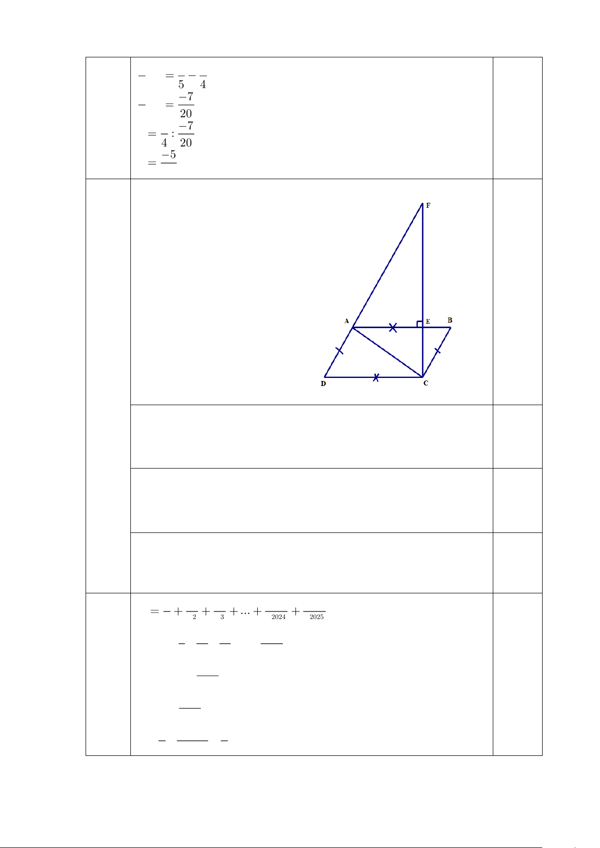 (1,0đ) P ... 2 3 2024 2025 3 3 3 3 3 1 1 1 1 3P = 1+ + + + ...+ 2 3 2024 3 3 3 3 0,25 1 3P − P = 1− 0,25 2025 3 1 2P = 1− 0,25 2025 3 1 1 1 P = − 0,25 2025 2 2.3 2