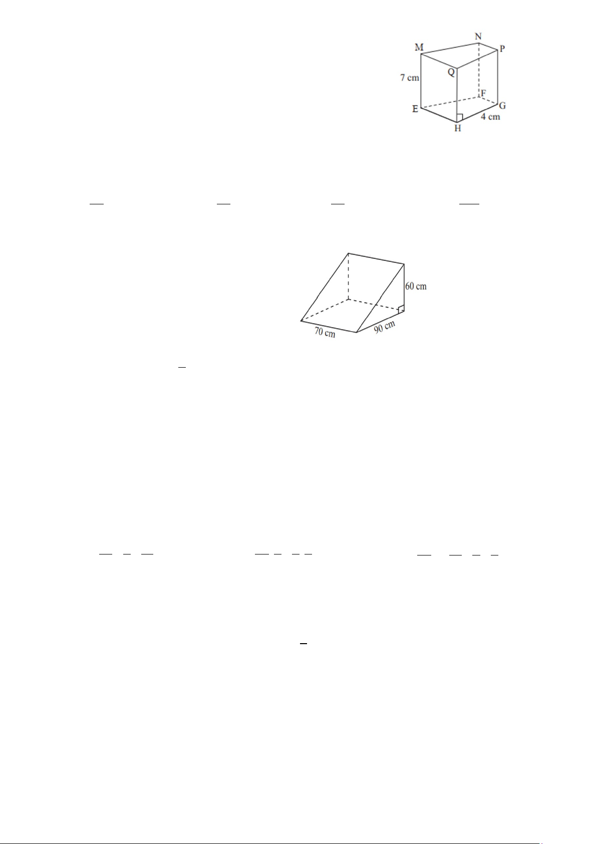 Câu 10: Chiều cao của hình lăng trụ đứng tam giác dưới đây là: A. 70 cm B. 90 cm C. 60 cm D. 80 cm