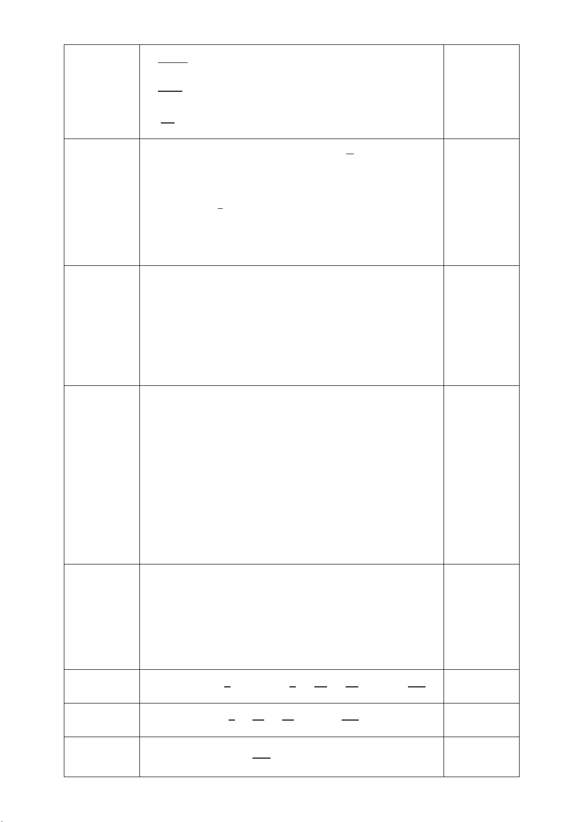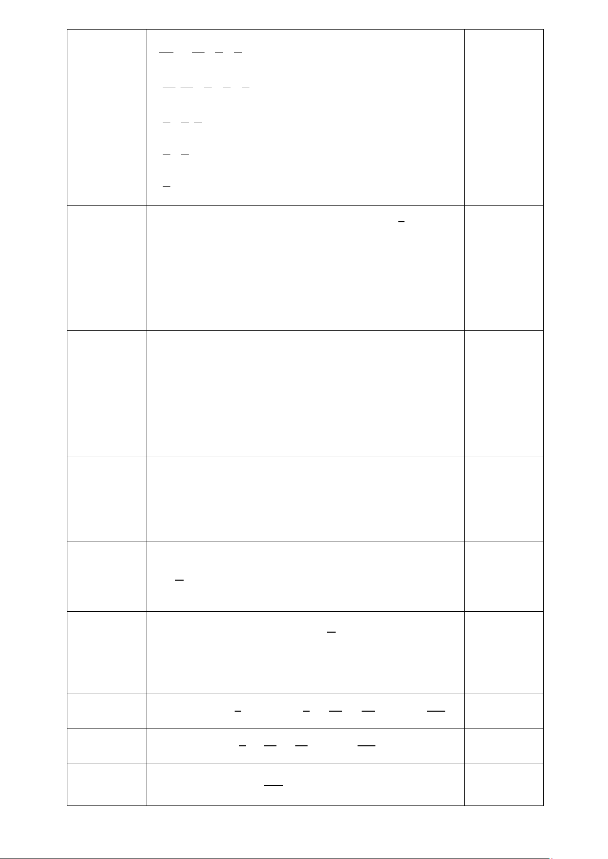 (Phải có bước quy đồng mẫu) 0,25 20 20 20 1 0,25 = 20 Câu 1b 3 − 5 1 3 . − . 4 6 6 4 3 − 5 1 . = + 0,25 4 6 6 3 − = .1 4 3 − = 0,25 4 Câu 1c 2 3 − 5 2 5 : . 0,25 − + 4 16 5 4 9 16 2 5 1 . . = − + 0,25 16 5 5 4 4 9 2 3 = − . 5 5 2 0,25 9 3 = − 5 5 0,25 6 = 0,25 5 Câu 2