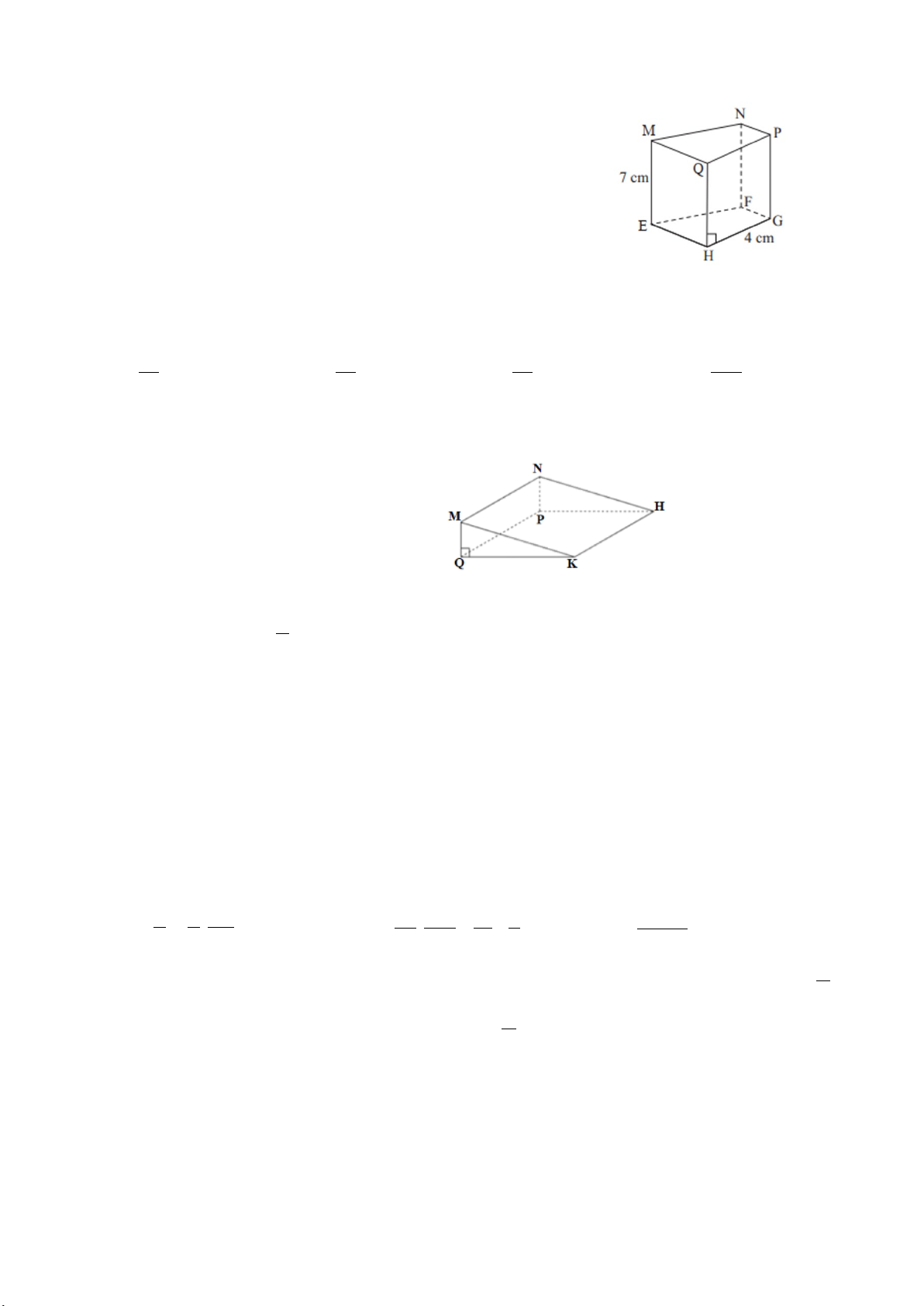 Câu 6: Cho hình lập phương MNPQ.EFGH có NF = 5cm. Độ dài cạnh ME bằng A. 3 cm B. 6 cm C. 4 cm D. 5 cm