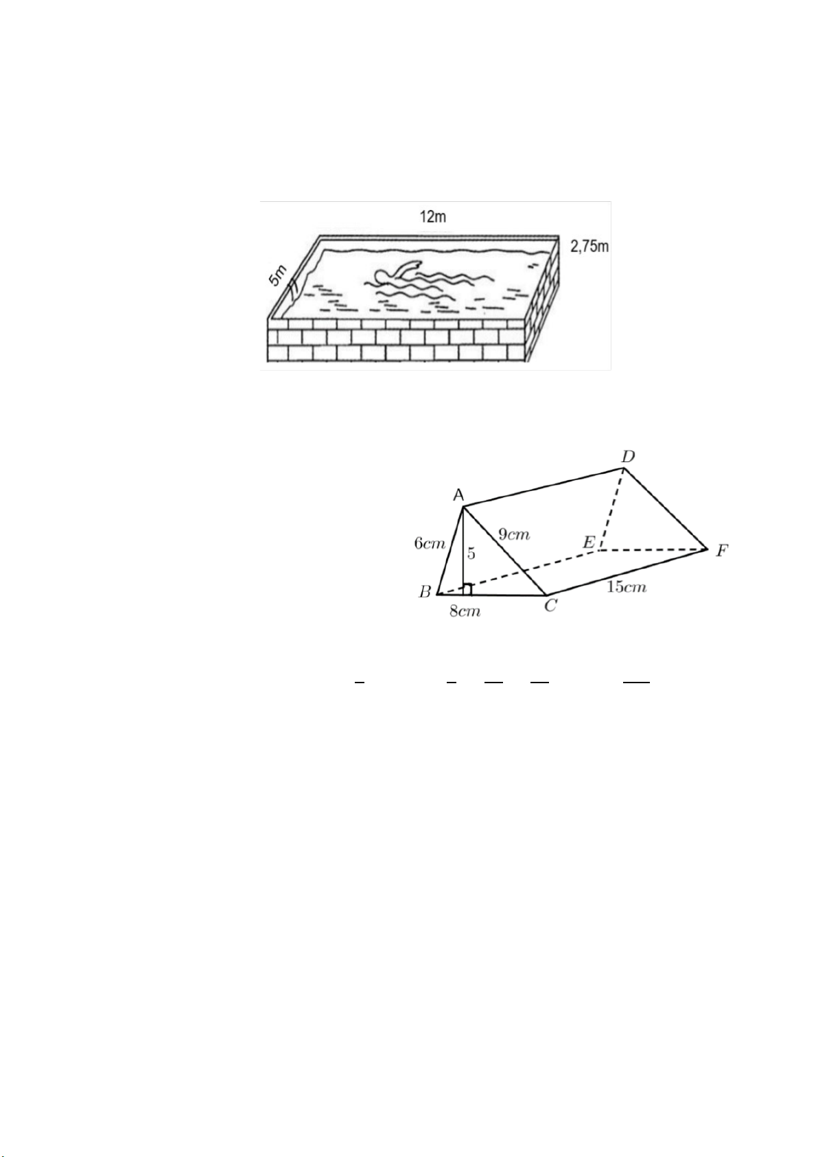 Câu 4 (1,0 điểm): Một bể bơi có chiều dài 12m, chiều rộng 5m và chiều cao 2,75