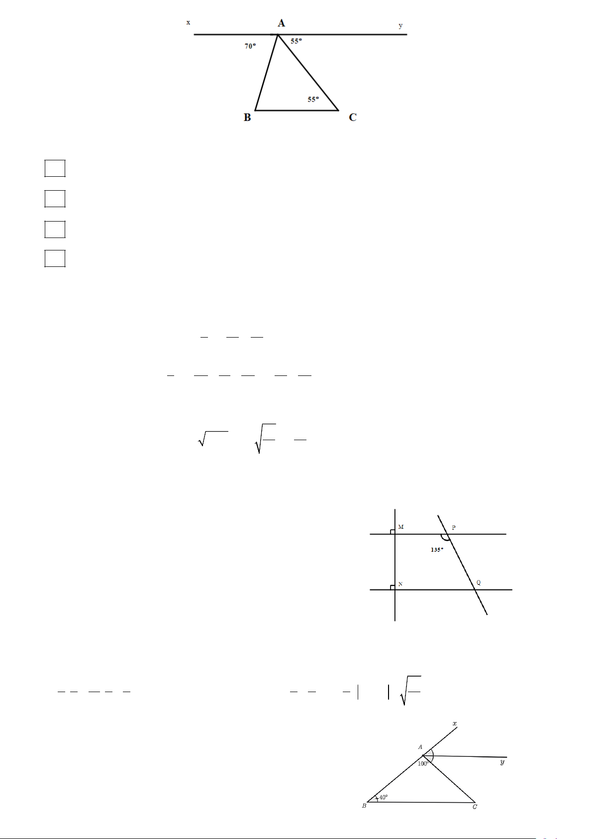 Bài 2. (1,0 điểm) Cho hình vẽ bên, biết Ay là phân giác của xAC; o 100 ; 40o BAC ABC a) Tính góc xAC và