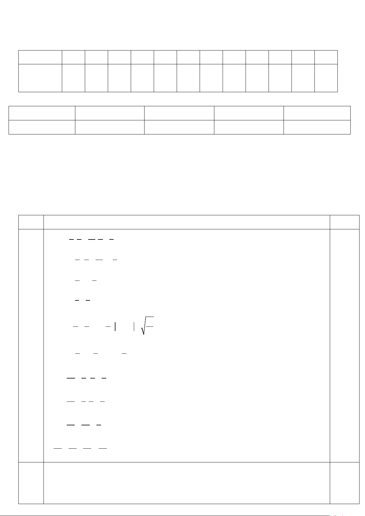 B. TỰ LUẬN (3,0 điểm) Bài Hướng dẫn chấm Điểm Bài 4 7 11 4 5 . + . − 1. 3 9 9 3 3 4 7 11 5 = + − a) 3 9 9 3 4 5 0,5 = .2 − 3 3 8 5 = − = 1 3 3 2 b) 1 2 2 1 − + 1 : 0, − 75 − 2 3 3 16 2 1 5 1 = − + : 0,75 − 6 3 4 1 5 3 1 0, 5 = + : − 36 3 4 4 1 5 4 1 = + . − 36 3 3 4 1 20 1 = + − 36 9 4 1 80 9 72 = + − = = 2. 36 36 36 36 Bài a) Ta có BAC và